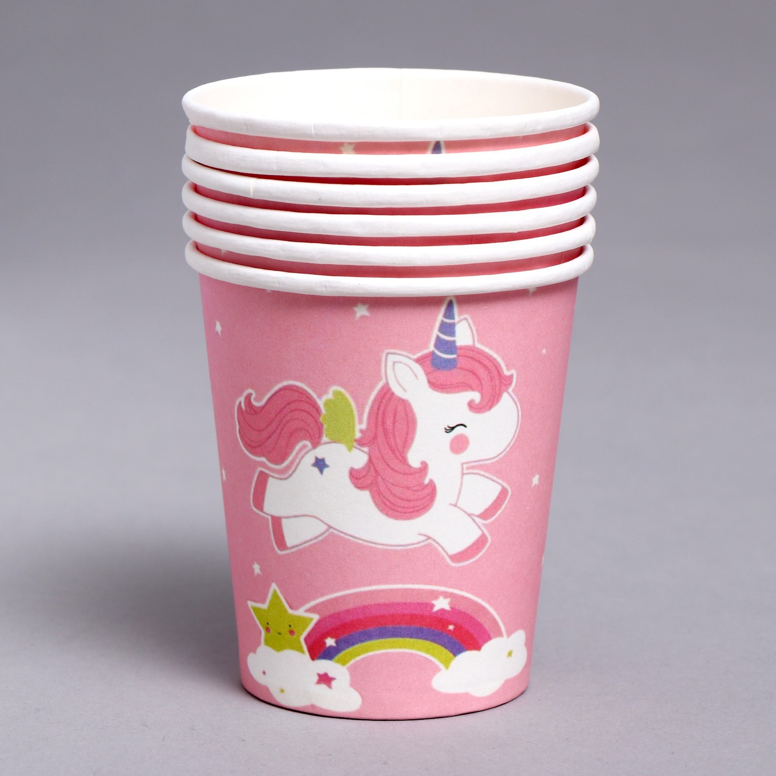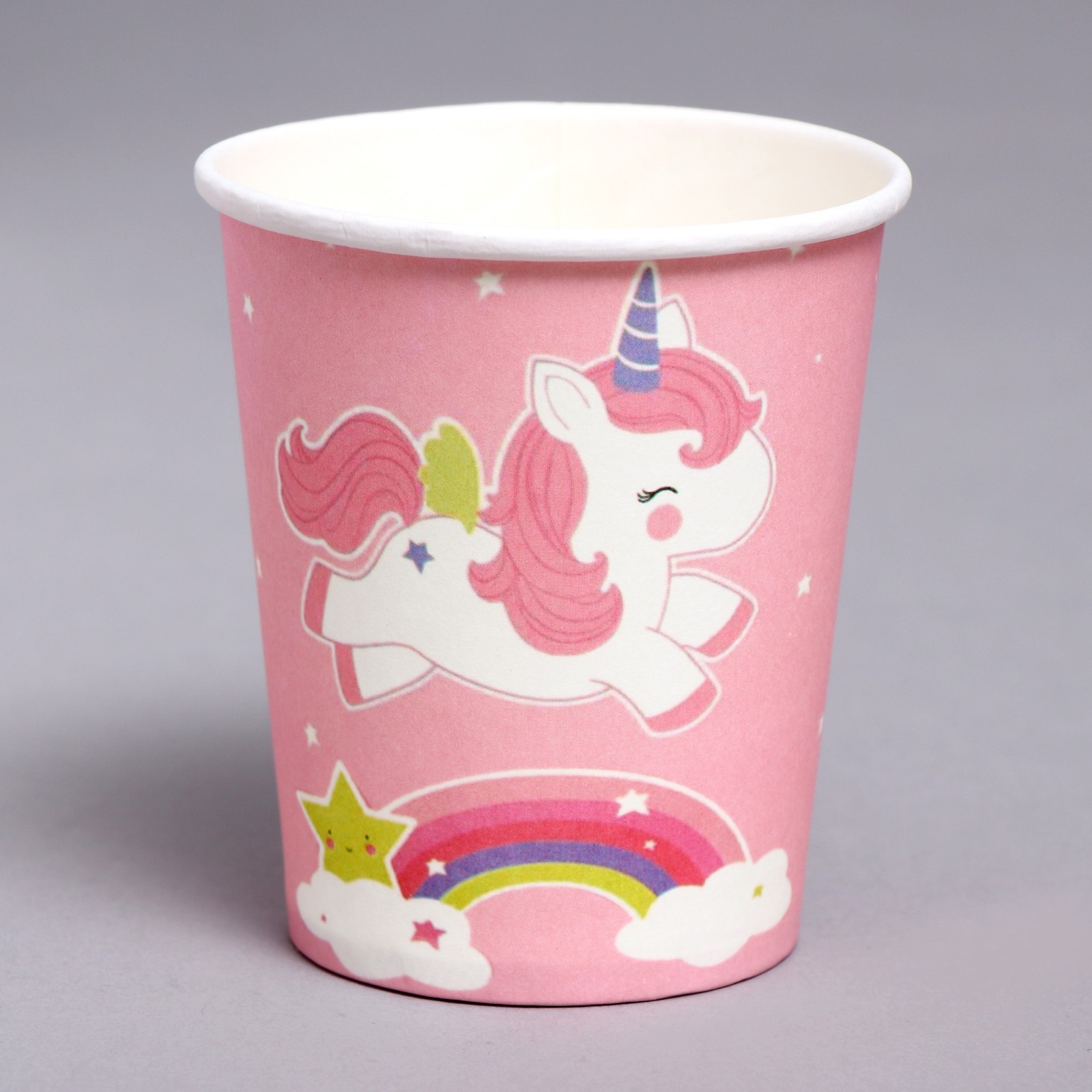 Стаканы бумажные «единорог», в наборе 6 штук. Посуда изготовлена из высококачественной бумаги без добавления поликарбоната, меламина и поливинилхлорида. Такие изделия безопасны, они не «раскисают» при взаимодействиями с продуктами питания. Преимущества бумажной посудыЭкологически безвредна: полностью разлагается в естественной среде. Гигиеничность и безопасность: при изготовлении используется первичный и вторичный картон с ламинацией, крафт-бумага и пищевые красители. Выдерживает высокую и низкую температуру. Сохраняет вкус еды и напитков, не выделяя вредных веществ, при нагреве. Тарелки и стаканы из бумаги приятнее на ощупь, чем аналогичная посуда из пластика. Такую посуду не надо мыть и невозможно разбить. Где применяется бумажная посуда:детские заведения и мероприятия, организация питание на свежем воздухе, точки продажи фастфуда, летние кафе и бистро, вендинг и офисы, доставка обедов. Цвет: Розовый Диаметр, см: 7.5 Количество слоёв: 1 В наборе, шт.: 6 Объём, мл: 250 Материал: Картон Материал: Бумага Вид: Стакан  развернуть описание ▼