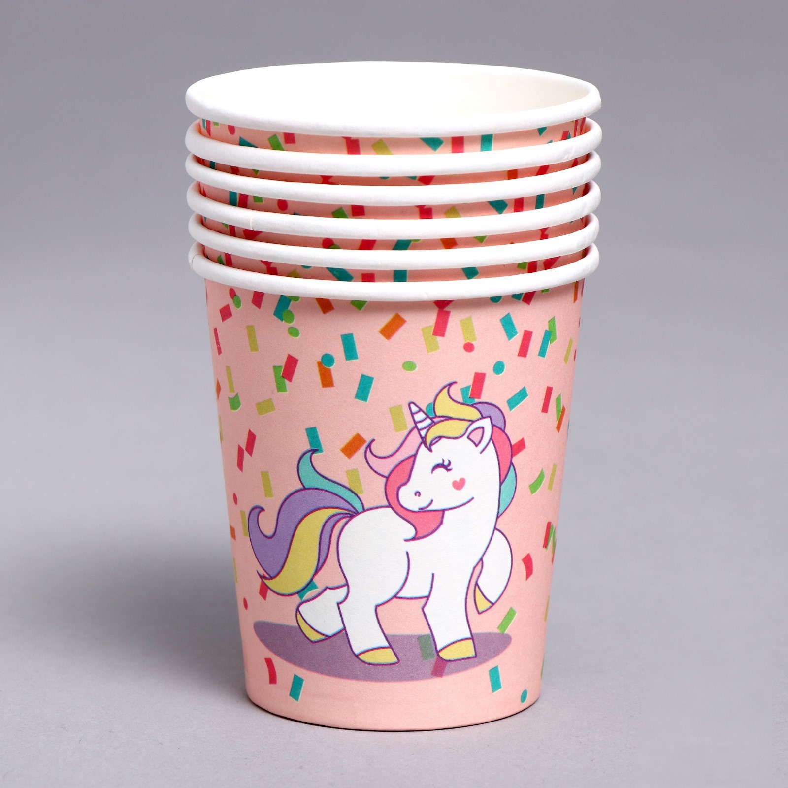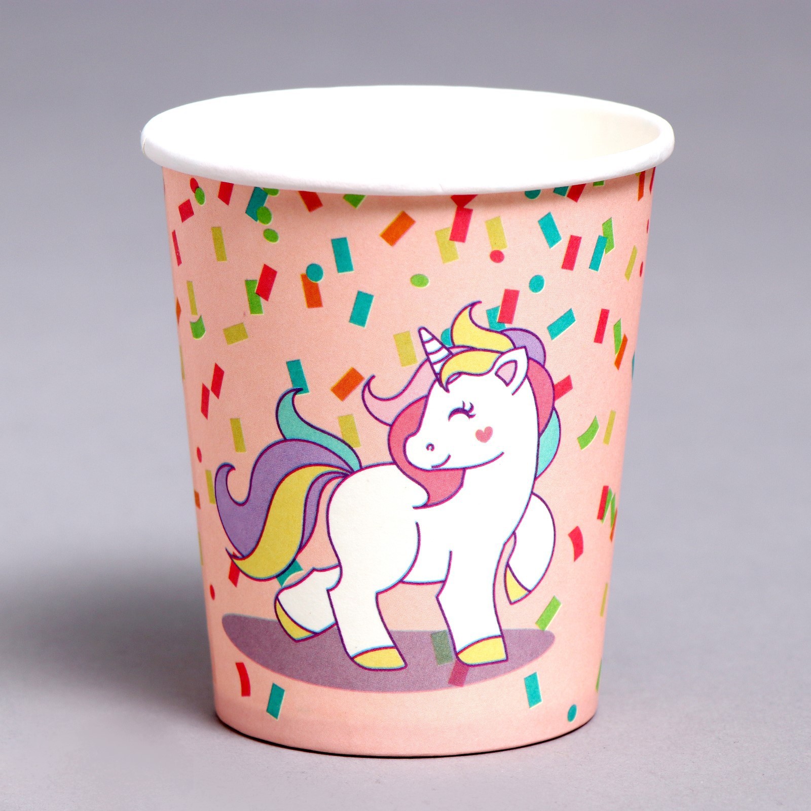 Стаканы бумажные «единорожек», в наборе 6 штук. Посуда изготовлена из высококачественной бумаги без добавления поликарбоната, меламина и поливинилхлорида. Такие изделия безопасны, они не «раскисают» при взаимодействиями с продуктами питания. Преимущества бумажной посудыЭкологически безвредна: полностью разлагается в естественной среде. Гигиеничность и безопасность: при изготовлении используется первичный и вторичный картон с ламинацией, крафт-бумага и пищевые красители. Выдерживает высокую и низкую температуру. Сохраняет вкус еды и напитков, не выделяя вредных веществ, при нагреве. Тарелки и стаканы из бумаги приятнее на ощупь, чем аналогичная посуда из пластика. Такую посуду не надо мыть и невозможно разбить. Где применяется бумажная посуда:детские заведения и мероприятия, организация питание на свежем воздухе, точки продажи фастфуда, летние кафе и бистро, вендинг и офисы, доставка обедов. Цвет: Розовый Диаметр, см: 7.5 Количество слоёв: 1 В наборе, шт.: 6 Объём, мл: 250 Материал: Картон Материал: Бумага Вид: Стакан  развернуть описание ▼