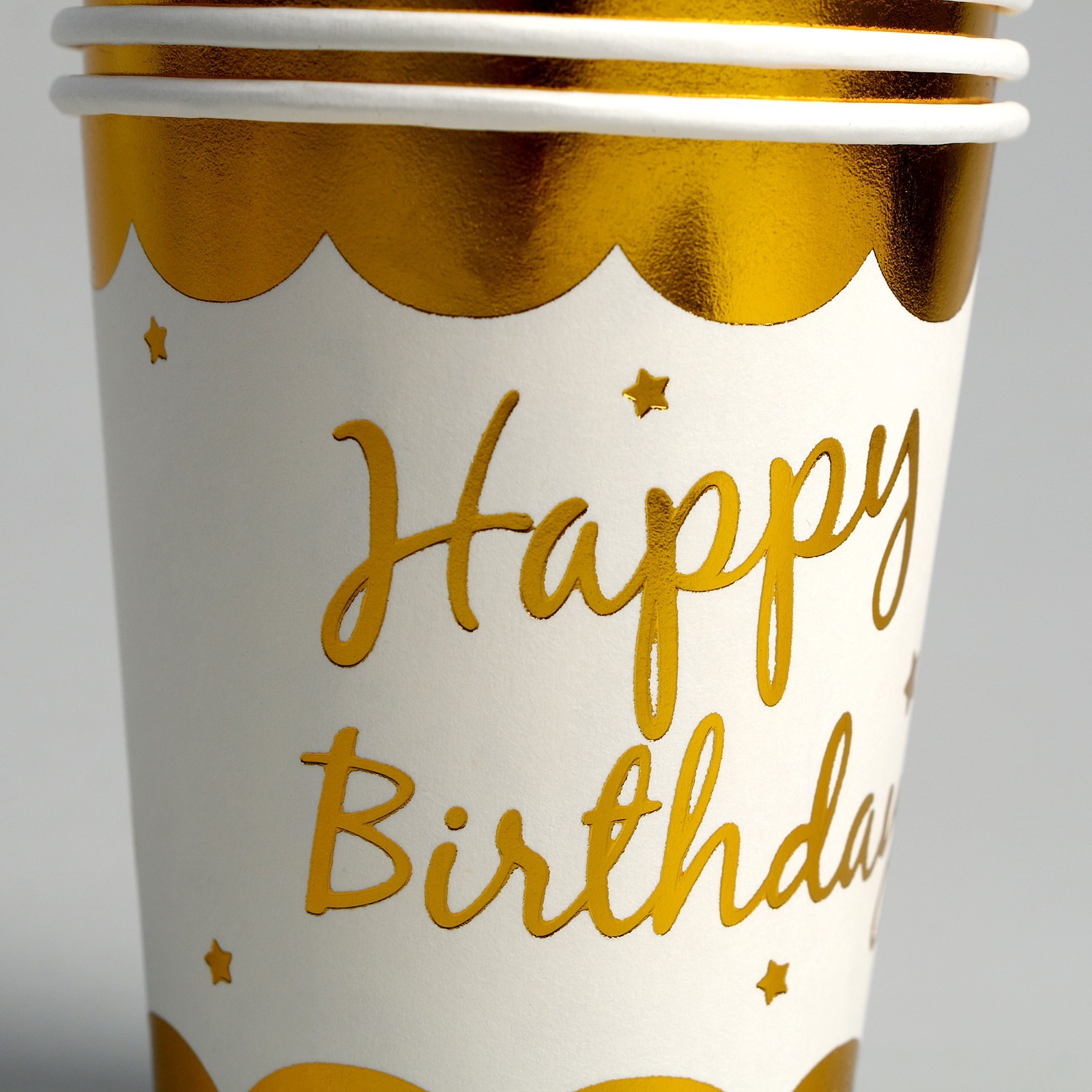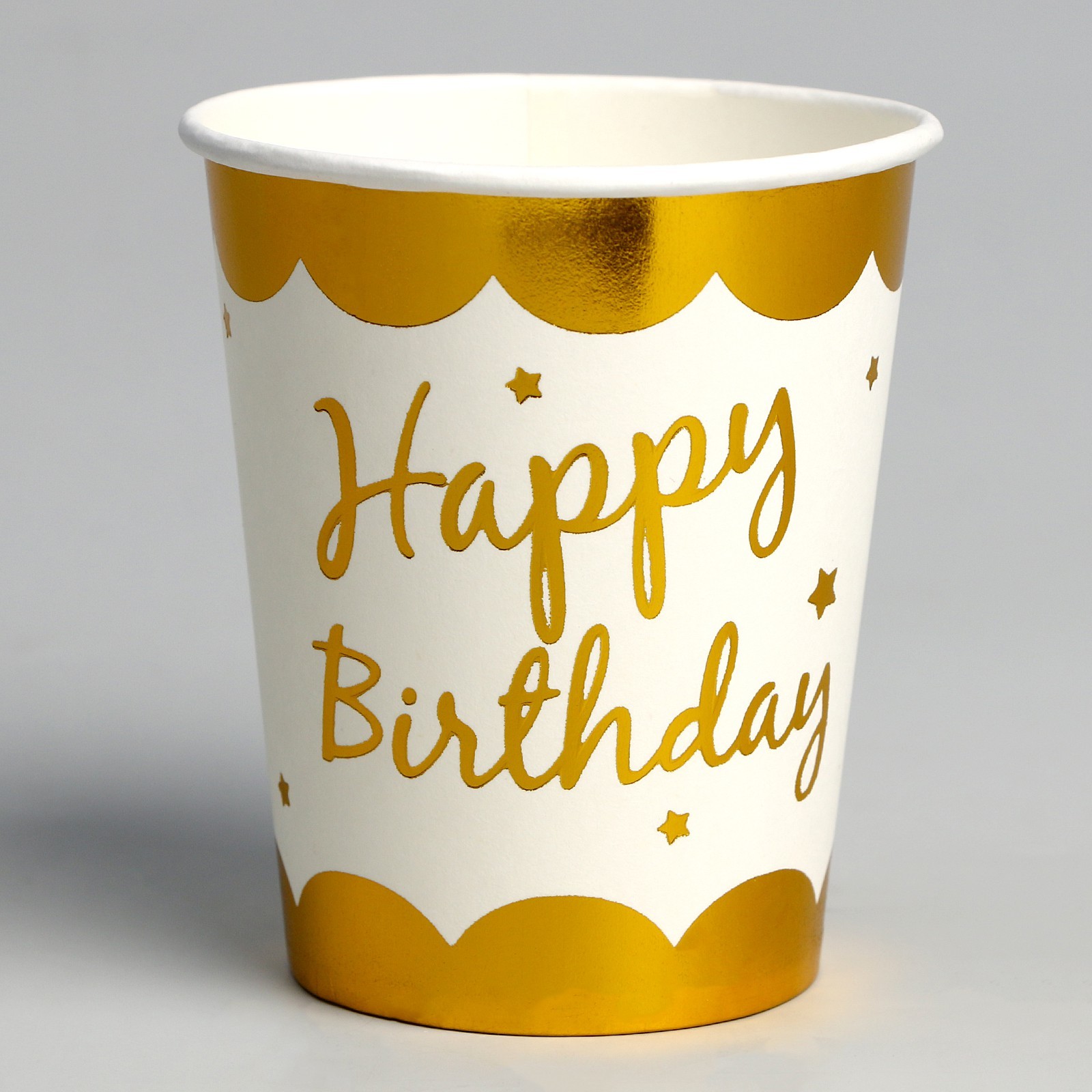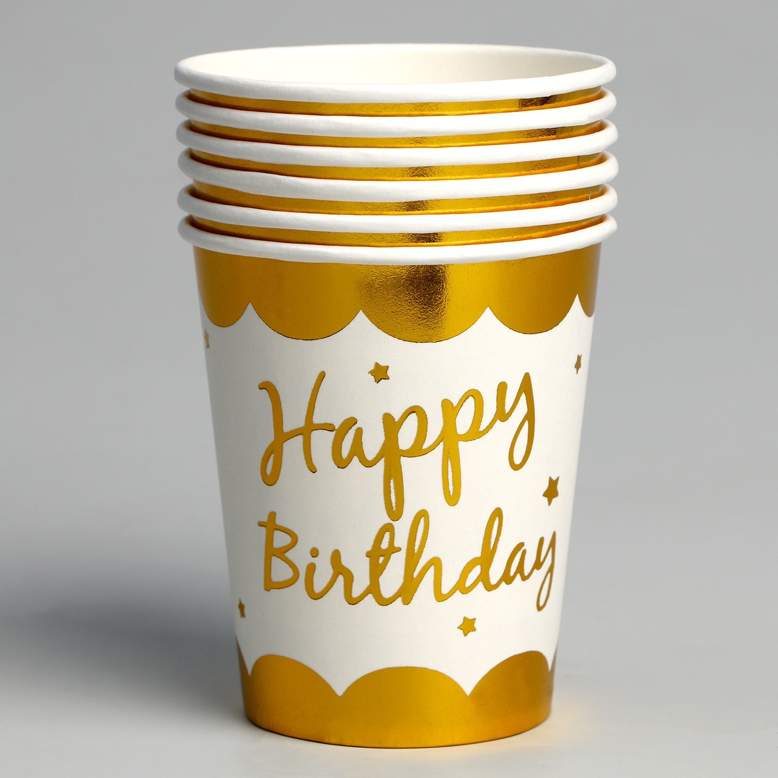 Стакан бумажный «с днём рождения», в наборе 6 шт, цвет золото