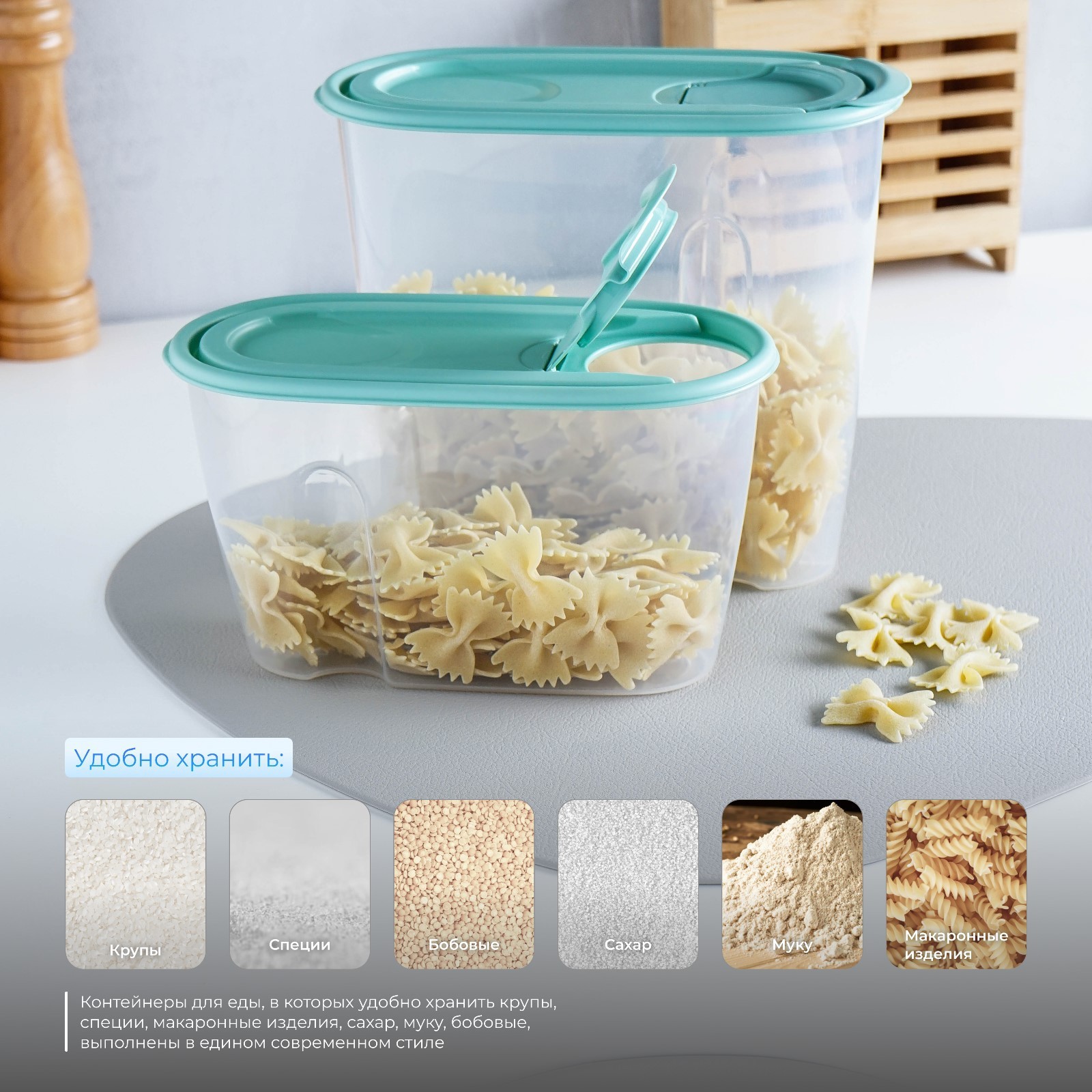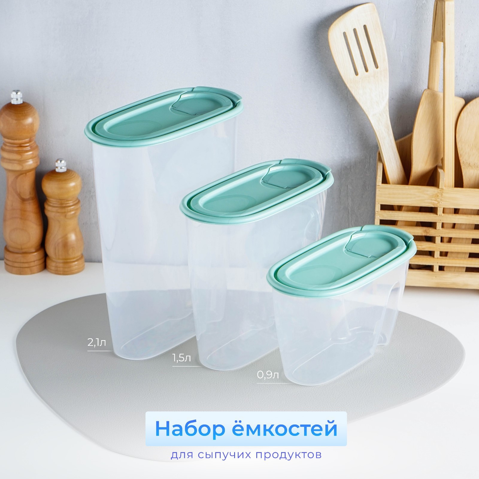 Набор ёмкостей для сыпучих продуктов, 3 шт: 0,9 л, 1,5 л, 2,1 л, цвет фисташковый