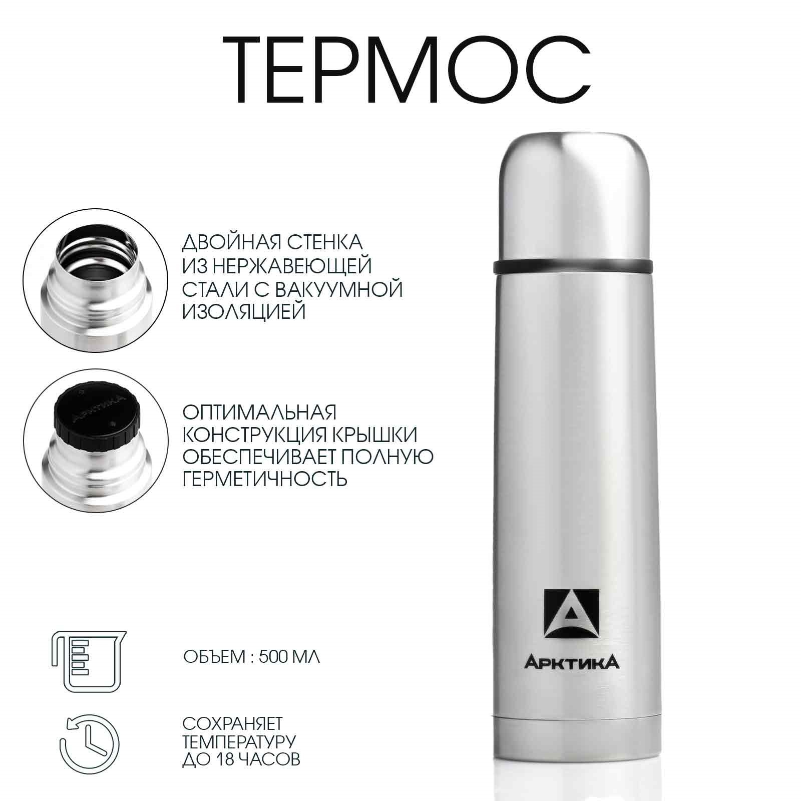 Термос "арктика" 101, с ситечком, 500 мл, сохраняет тепло 18 ч, 24.5 х 7 см