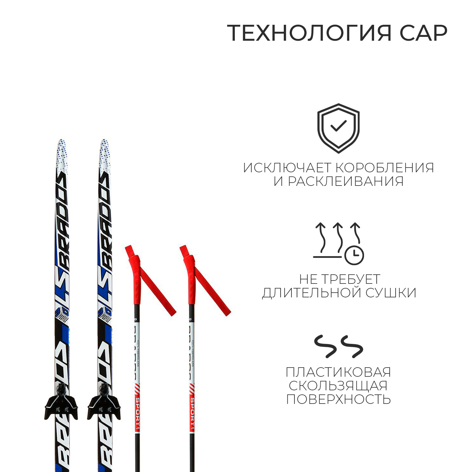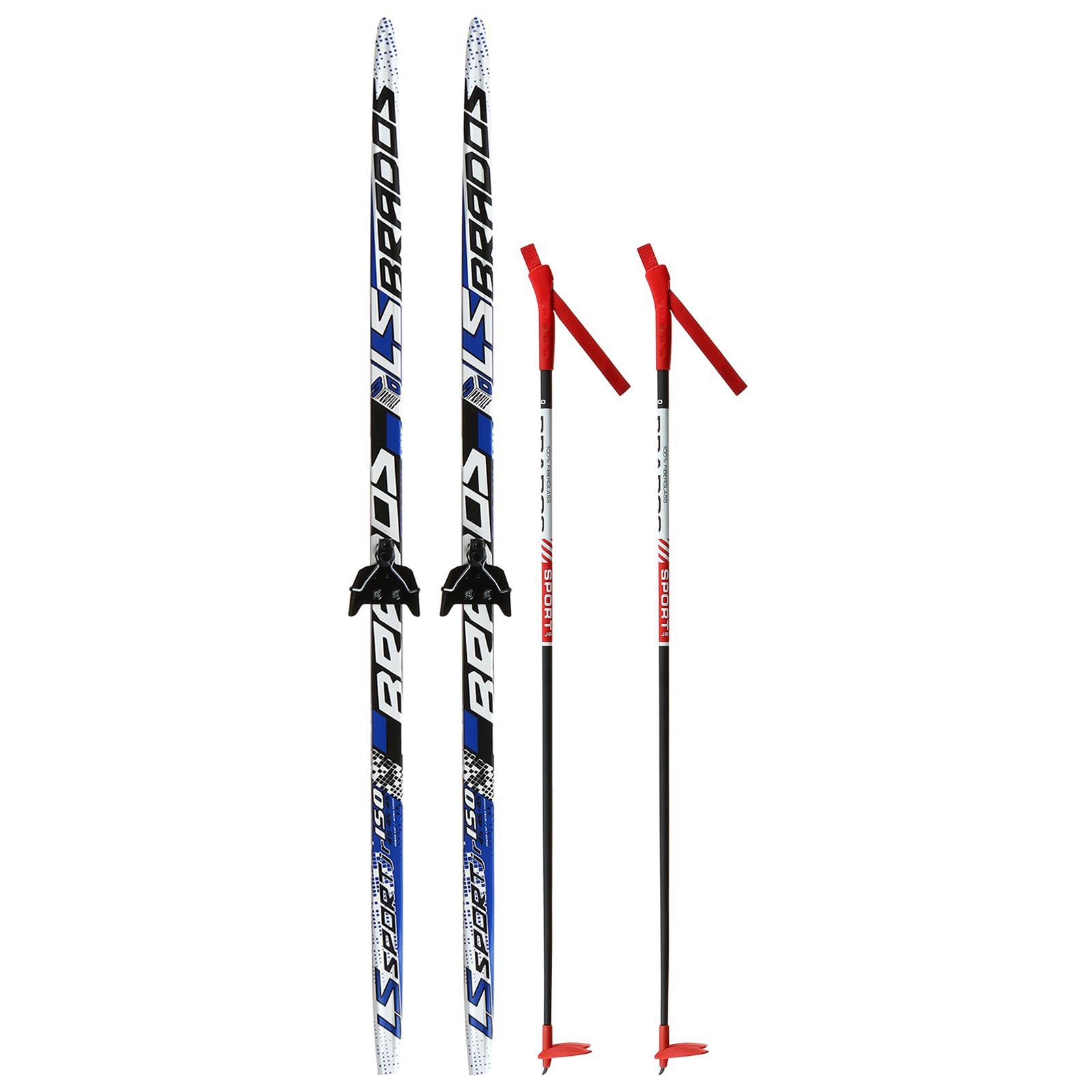 Комплект лыжный: пластиковые лыжи 150 см с насечкой, стеклопластиковые палки 110 см, крепления Nn75 мм, цвета микс