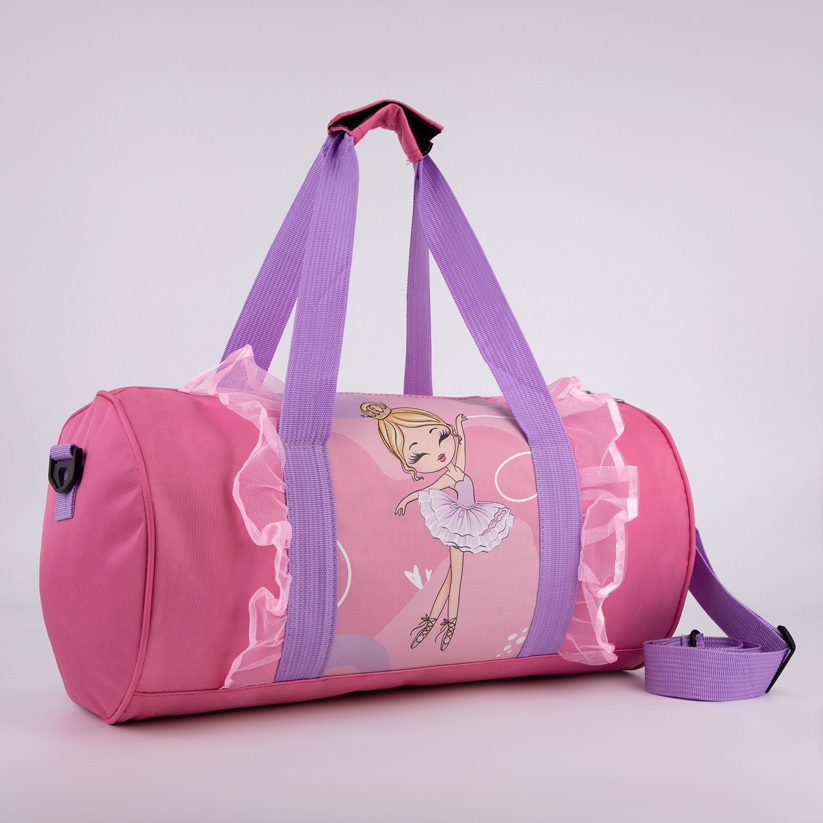 Сумка детская спортивная для девочки «балерина», 40 х 20 х 20см. Цвет: Розовый Для кого: Для девочки Длина, см: 43 Вид застёжки: Молния Материал: Полиэстер Модель сумки: Баул Дополнительный объём: Без увеличения Особенности: Длинный ремень  развернуть описание ▼