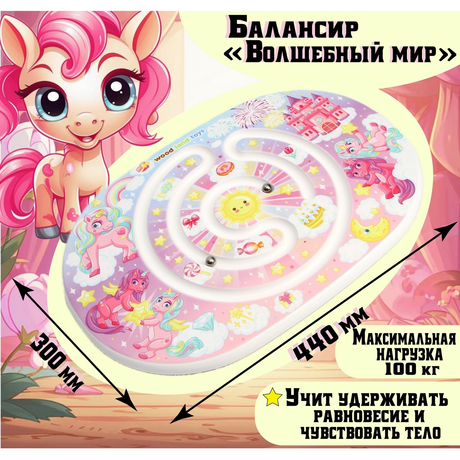 Балансир «волшебный мир». Балансир детский— это увлекательная и полезная игрушка для детей от 3 лет. Изготовленный из качественного дерева, он обеспечивает безопасность и долговечность. Яркий цвет и оригинальный рисунок стимулируют фантазию ребёнка. Особенности набора Развивает координацию и ловкость — важные навыки для физического развития. Изготовлен из натурального дерева — экологически чистый и безопасный материал. Польза для ребёнкаБалансир помогает детям развивать координацию и ловкость, превращая процесс игры в полезное и увлекательное занятие. Он станет отличным дополнением к домашнему игровому уголку, подарит радость и будет способствовать гармоничному развитию вашего ребёнка. Цвет: Розовый Для кого: Для девочки Возраст: От 3 лет Maксимальная нагрузка, кг: 100 Материал: Дерево Жанр игры: На баланс Жанр игры: На реакцию и внимание Развитие навыков: Координация Развитие навыков: Ловкость Вид головоломки: Лабиринты Сложность головоломки: 1 Количество игроков: 1 - 2 Температурное ограничение: Нет Коврик в комплекте: Нет Ограничители: Нет Вид: Балансборды  развернуть описание ▼