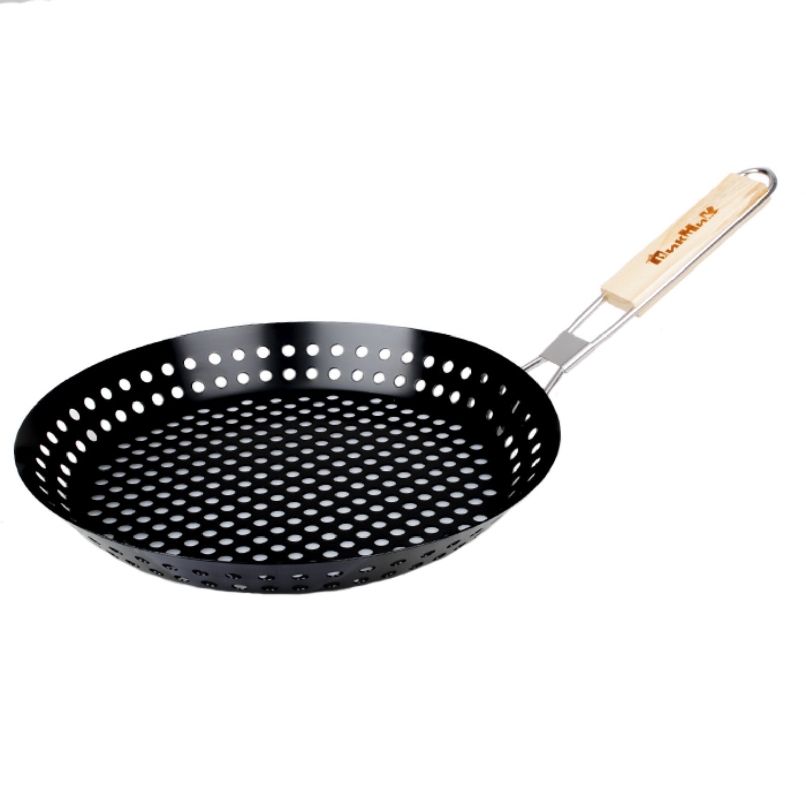 Жаровня для овощей, морепродуктов, грибов, d-30 см, глубина-4 см антипригарная. Жаровня используется для приготовления овощей, морепродуктов и грибов. Поместите продукты в сковороду и поставьте на угли или огонь — и вам не придётся переживать, что еда может упасть в мангал. ОсобенностиЖаровня имеет антипригарное покрытие. Изделие оснащено складной ручкой для удобного хранения. Толщина металла: 0, 8 мм. Размер, см: 30 х 30 Материал ручки: Дерево Материал рабочей части: Сталь Назначение: Для овощей Назначение: Для морепродуктов Антипригарное покрытие: Да  развернуть описание ▼
