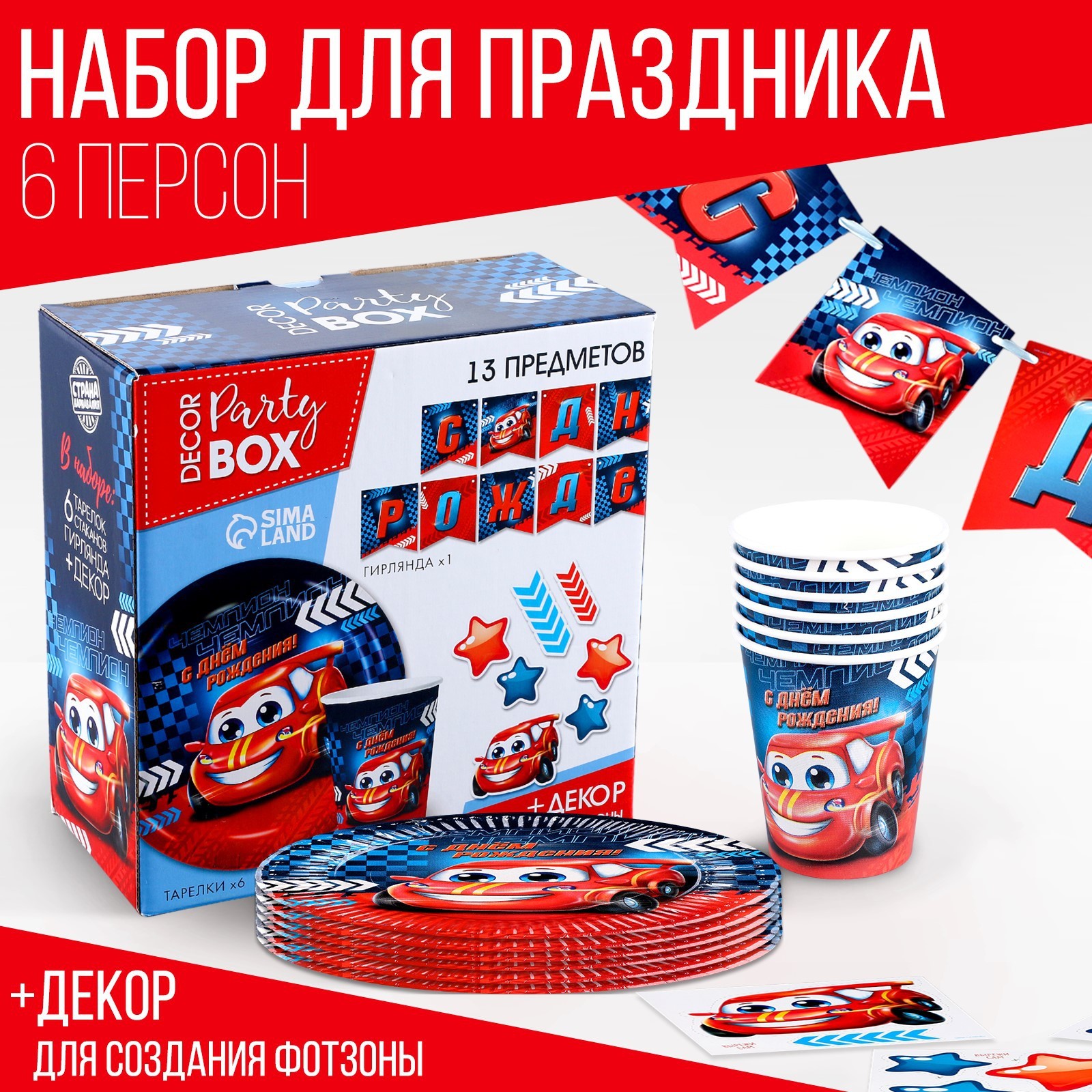 Набор бумажной посуды одноразовый декор «тачка», 6 тарелок, 6 стаканов, 1 гирлянда, декор фотозоны