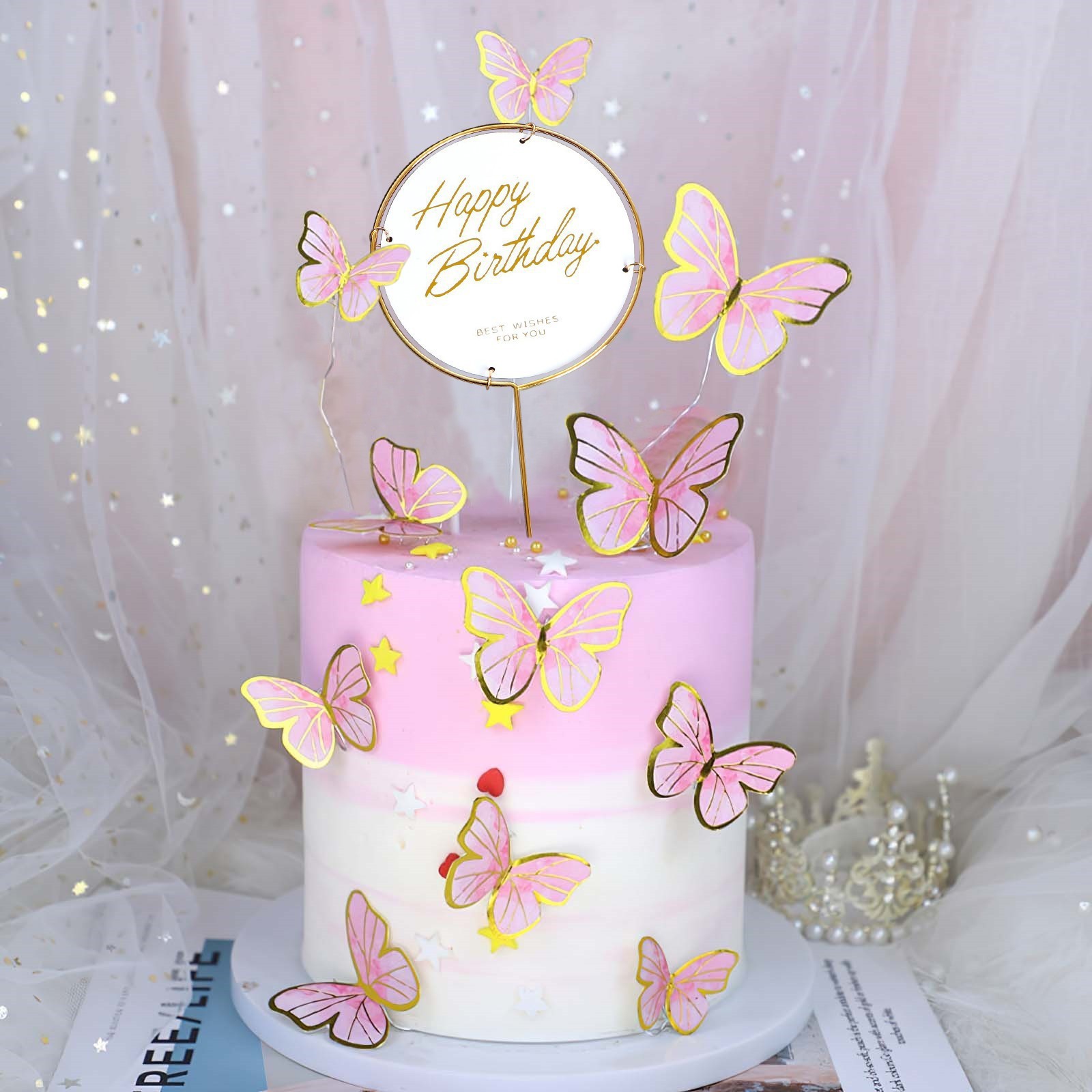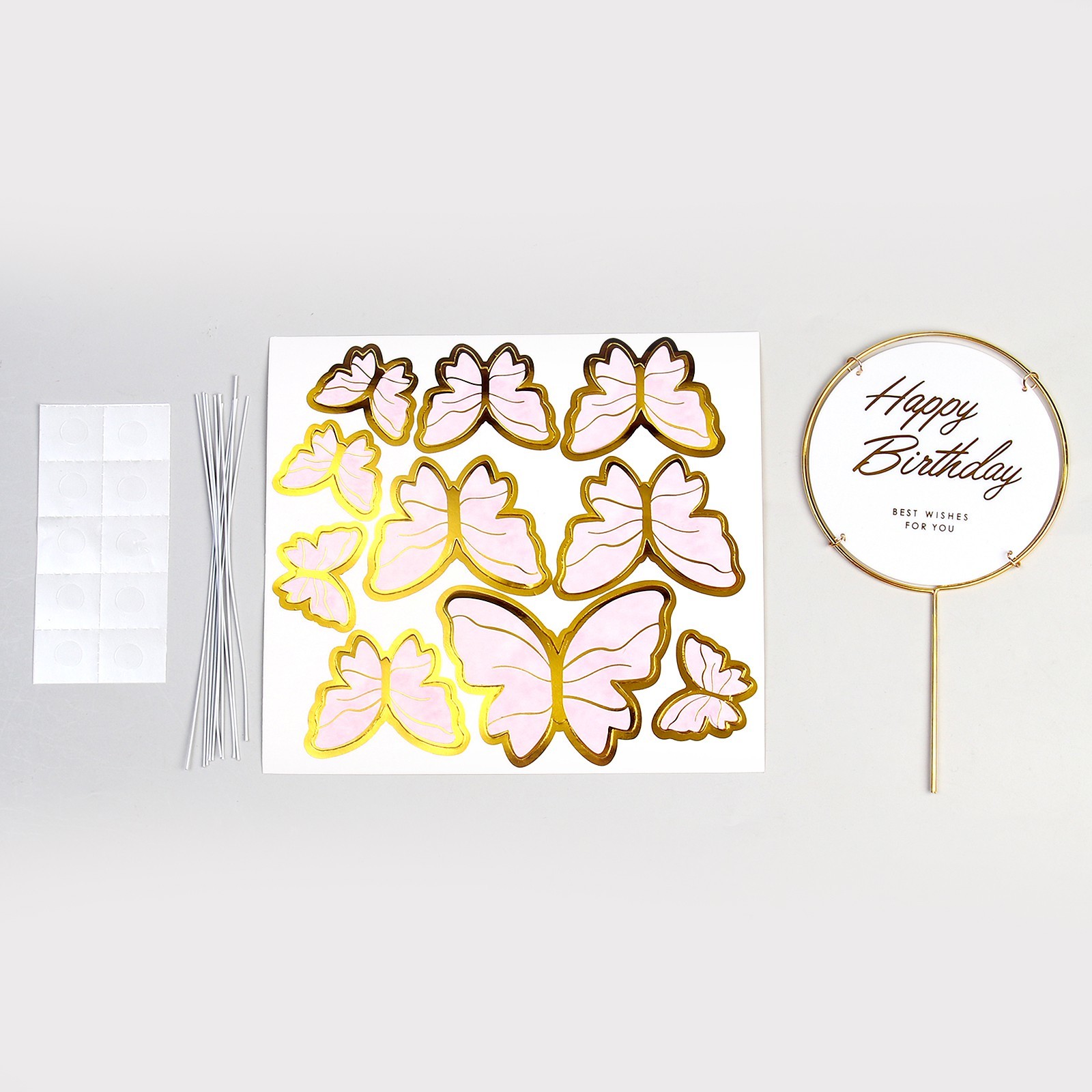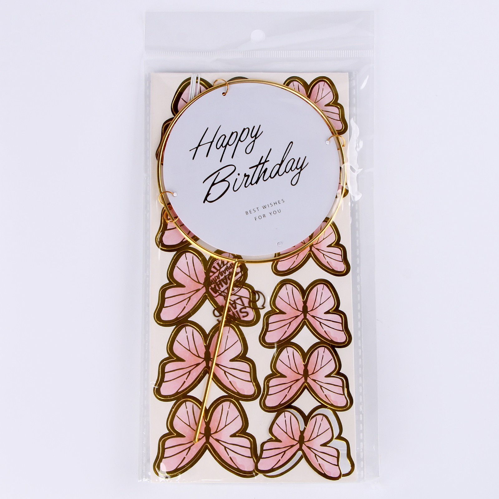 Набор для украшения торта «с днём рождения», бабочки, цвет розовый