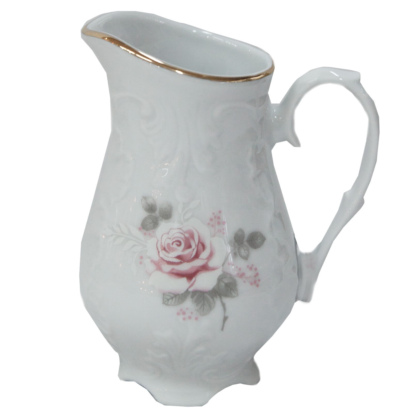 Молочник 200 мл, Rococo, декор «бледные розы, отводка золото»