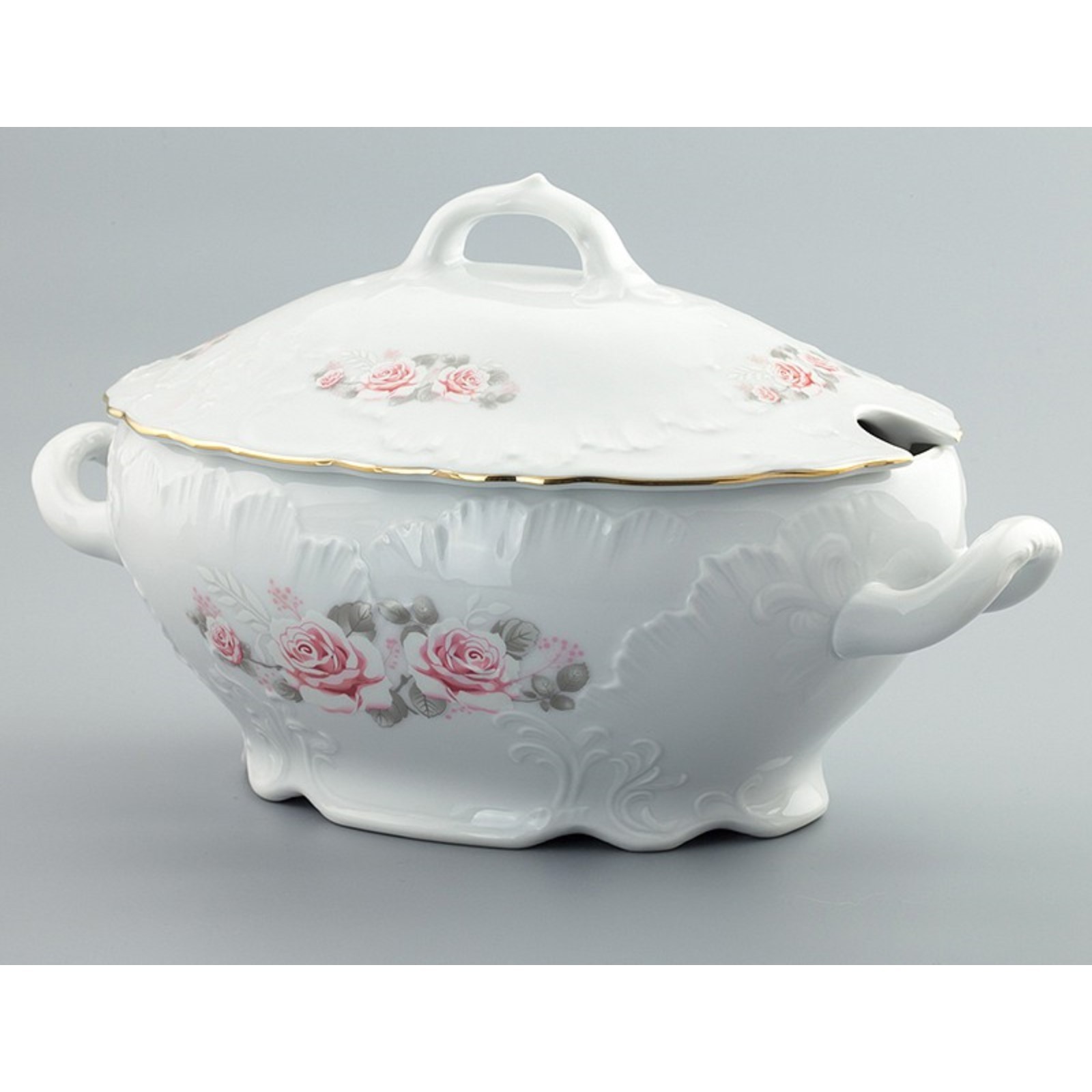 Супник 2.7 л, декор «rococo, бледные розы, отводка золото»