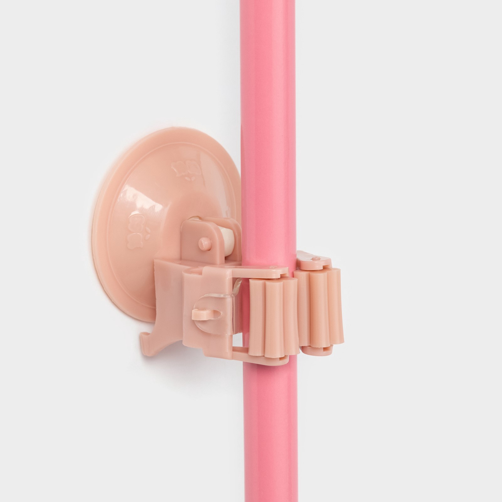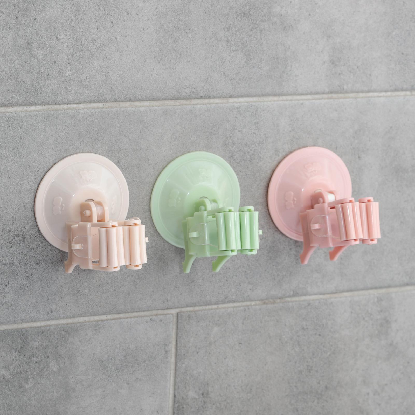 Держатель для уборочного инвентаря на вакуумной присоске, 5,5x5,5x7 см, цвет микс. Удобный и практичный аксессуар, который поможет навести порядок в вашей ванной комнате, прихожей или туалете — держатель швабр, щёток и других бытовых изделий. Преимущества: Яркое изделие из лёгкого прозрачного пластика высшего сорта крепится к любой гладкой поверхности при помощи липучки. Подходит для всех стандартных черенков. Разместить можно в абсолютно любом месте без особых усилий. Пластиковый держатель оптимален для использования в ванной комнате и кухонном интерьере — он не боится влаги и больших перепадов температуры. Даже в таких условиях настенный держатель будет исправно служить вам годами. Для его установки в ванной, на кухне, в другом помещении не нужно сверлить стены или наносить на них неэстетичное клеевое покрытие. Необычный дизайн и насыщенные цвета понравятся всем членам семьи, особенно детям, которых можно будет при помощи держателя приучать к порядку. Как клеить: Обезжирьте поверхность спиртом или жидкостью для мытья стекол. Протрите поверхность сухой чистой салфеткой. Снимите защитную плёнку. Зафиксируйте держатель на стене (придерживайте его в течение 15 секунд для лучшего результата). Подождите 24 часа, только потом приступайте к эксплуатации товара. Выбирайте качественные и полезные аксессуары для ванной комнаты! Цвет: МИКС Материал: Пластик  развернуть описание ▼