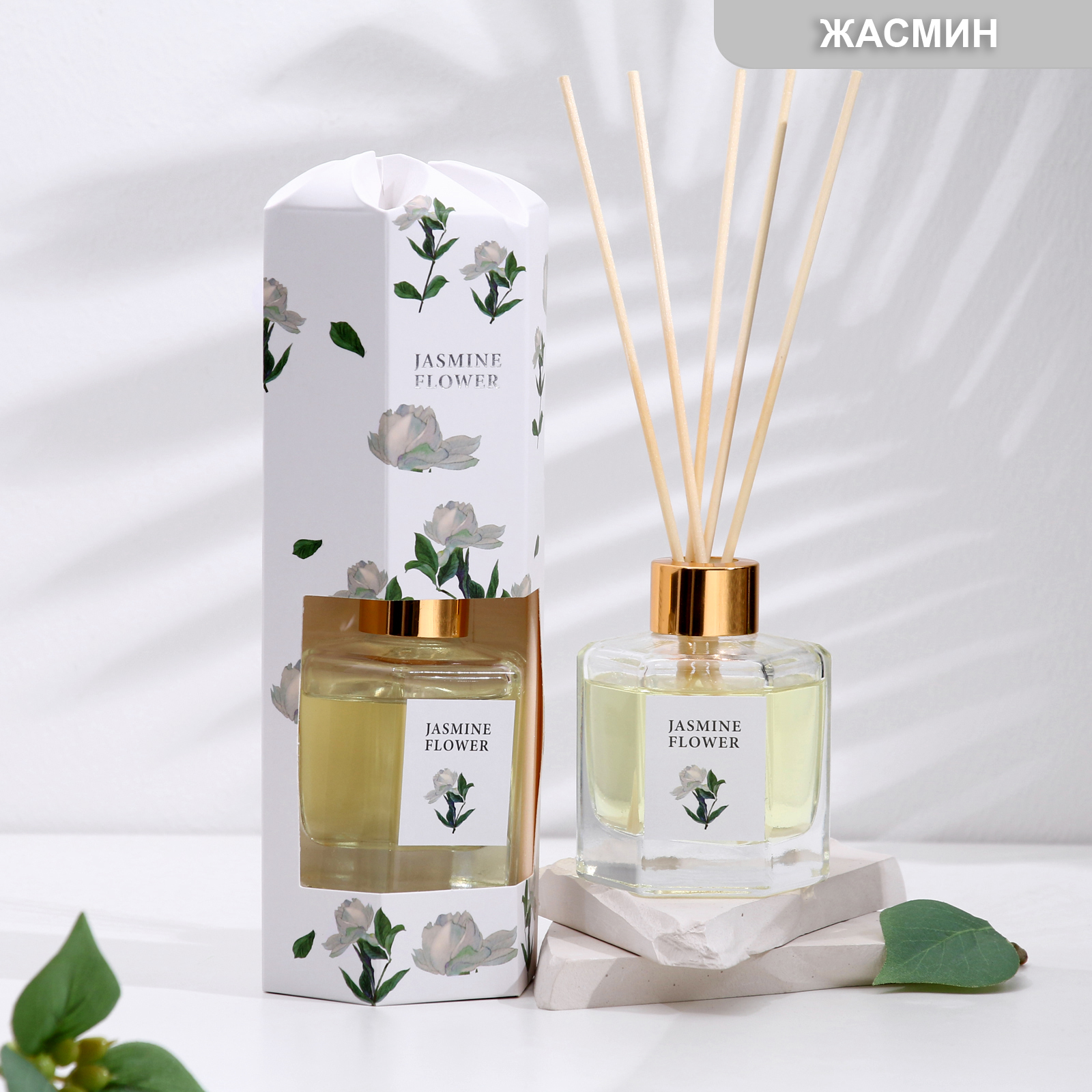 Диффузор ароматический "белый жасмин", 100 мл. Диффузор — это безопасный, экологически чистый и натуральный способ ароматизации помещения, является прекрасной альтернативой ароматизированным спреям. Чтобы аромат оставался насыщенным, 1–2 раза в день доставайте палочки и переворачивайте их, вставляя другим концом в стеклянную колбу. Интенсивность аромата зависит от влажности воздуха (в более влажном помещении летучесть аромата сильнее), проветриваемости помещения и количества палочек. parts count: 0 Объём, мл: 100 Вид ароматизатора: Диффузор Аромат: Жасмин  развернуть описание ▼