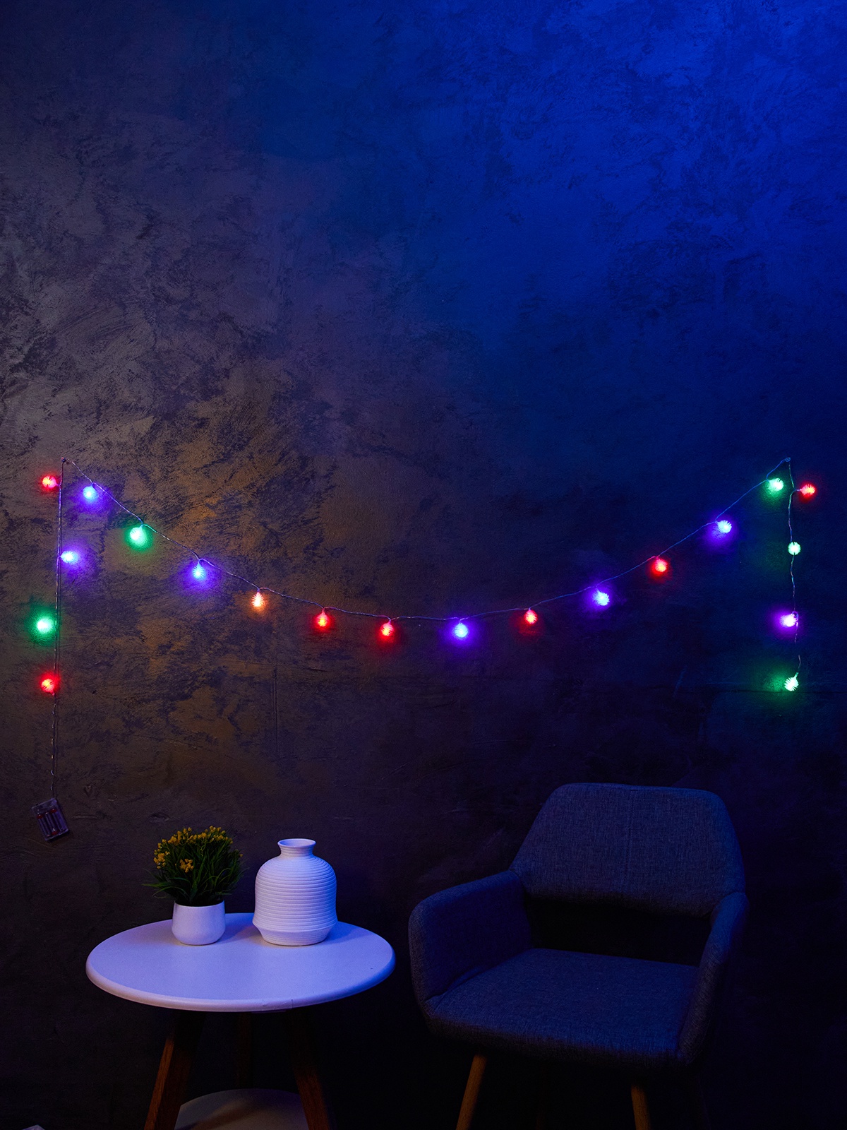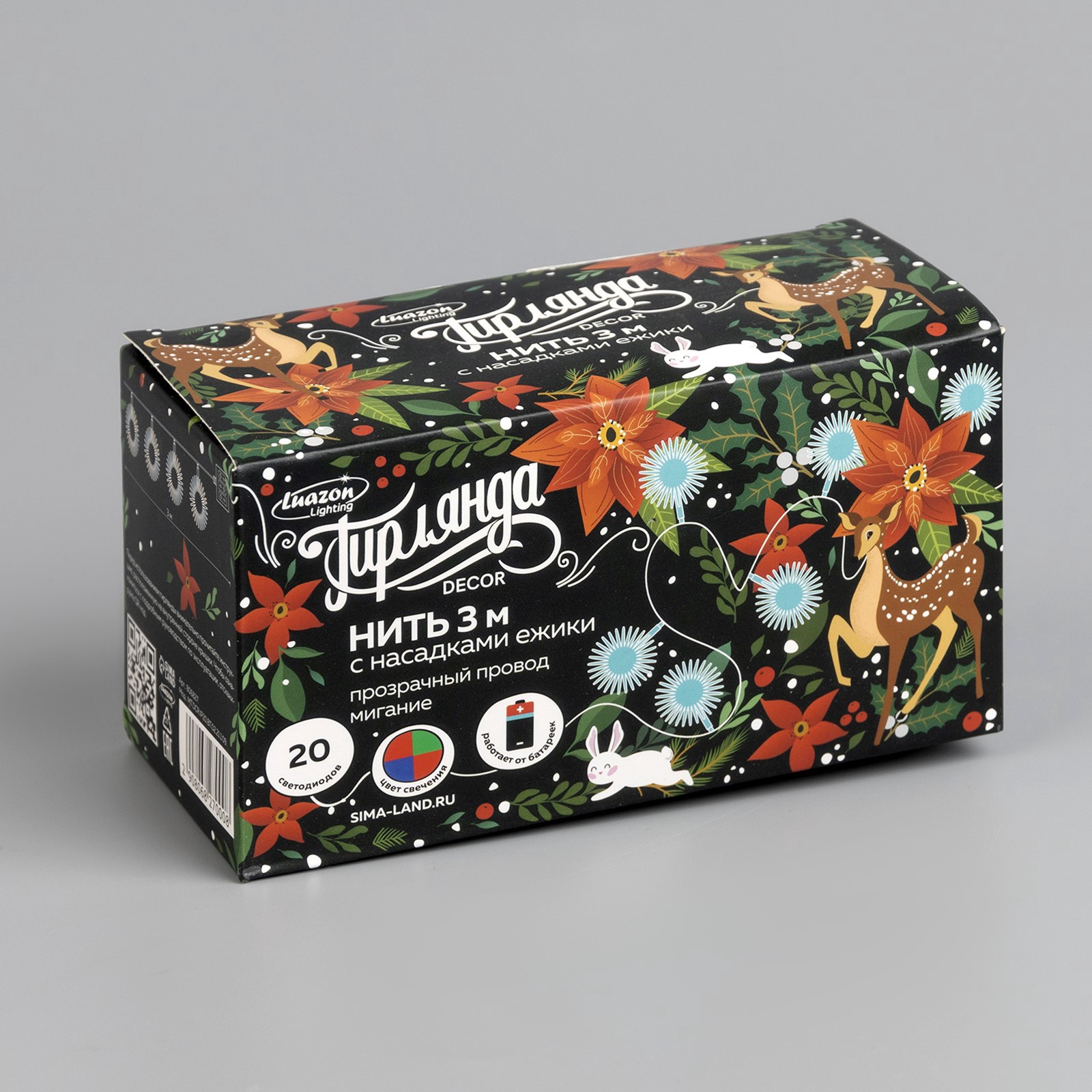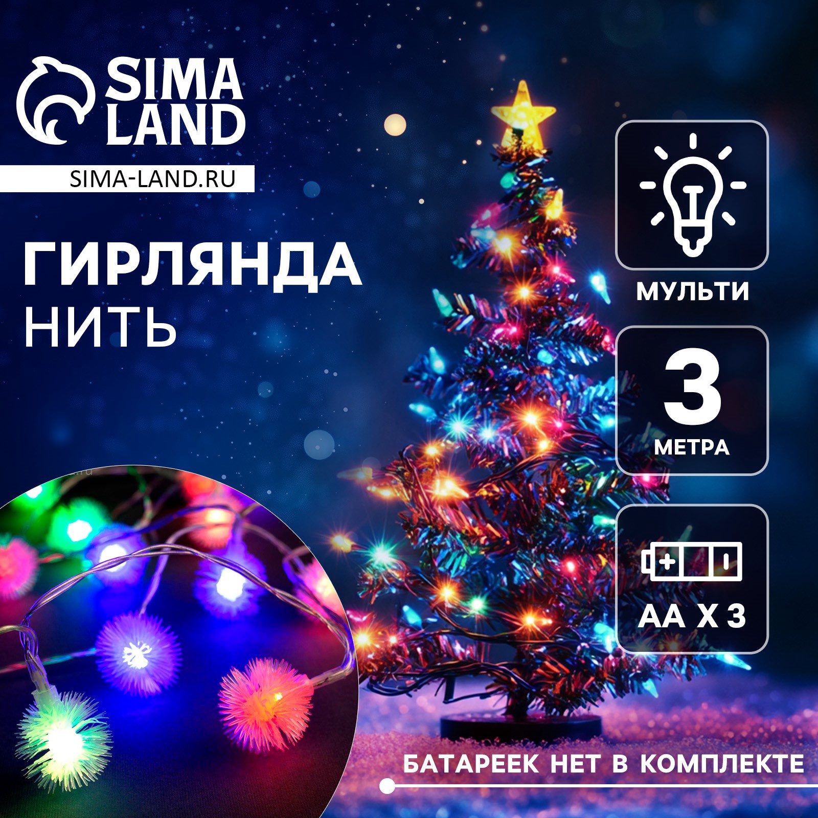 Гирлянда «нить» 3 м с насадками «ёжики», Ip20, прозрачная нить, 20 Led, батарейки Aaх3 (нет в комплекте), свечение мульти