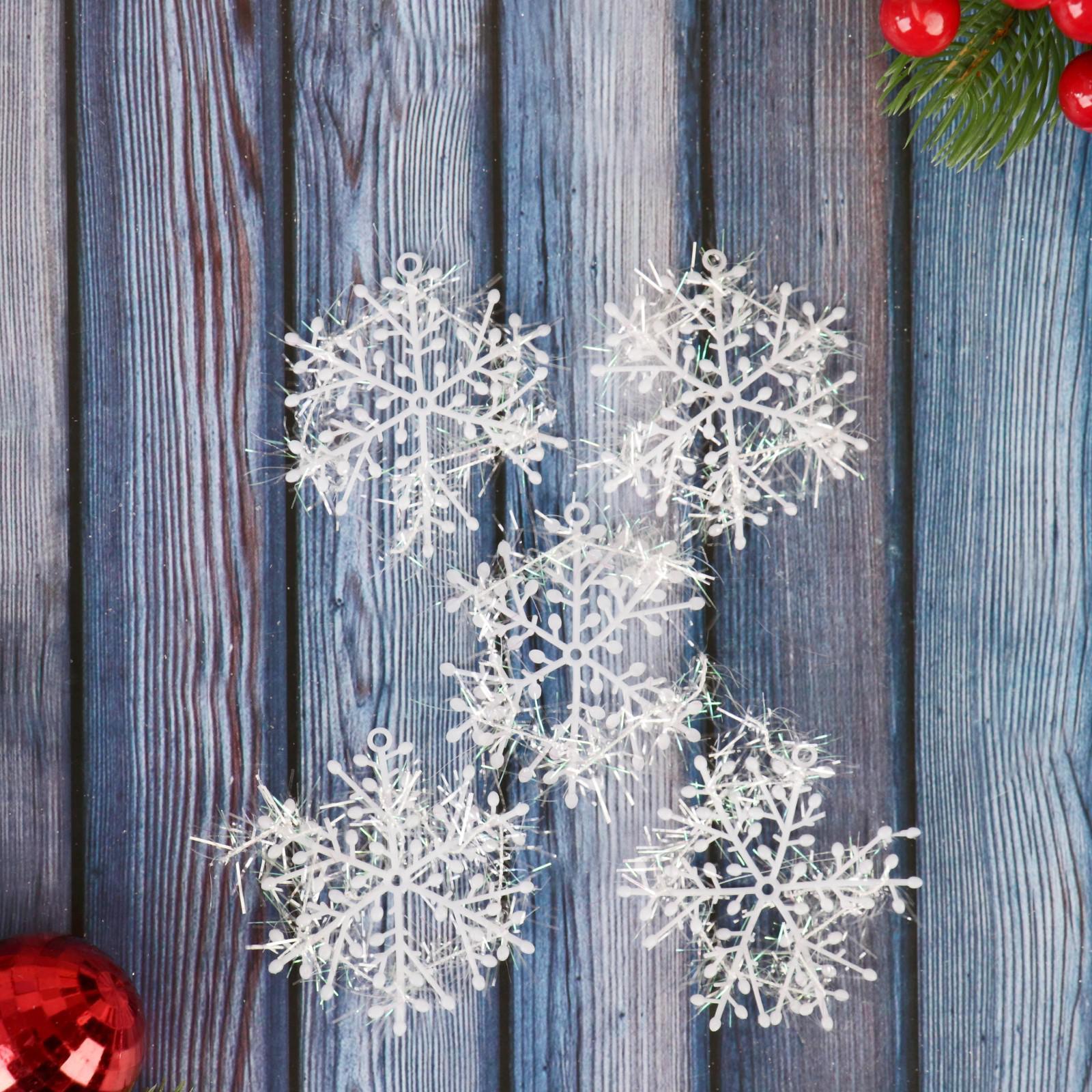 Ёлочные игрушки набор 6 шт. «зимнее волшебство. снежинка - пушинка», D=6 см, белый