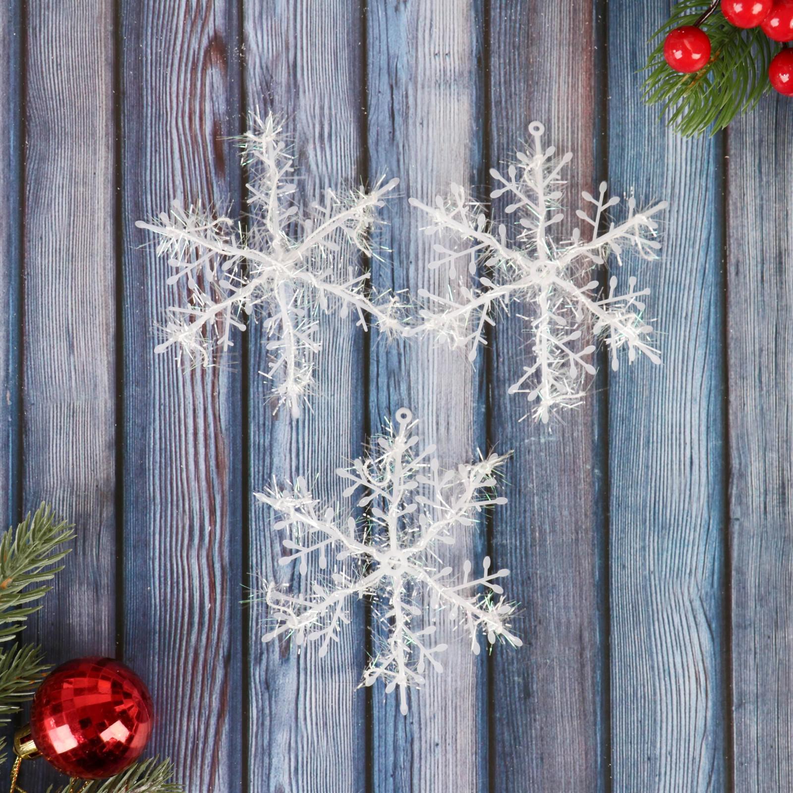 Ёлочные игрушки набор 3 шт. «зимнее волшебство. снежинка - пушинка», D=10 см, белый