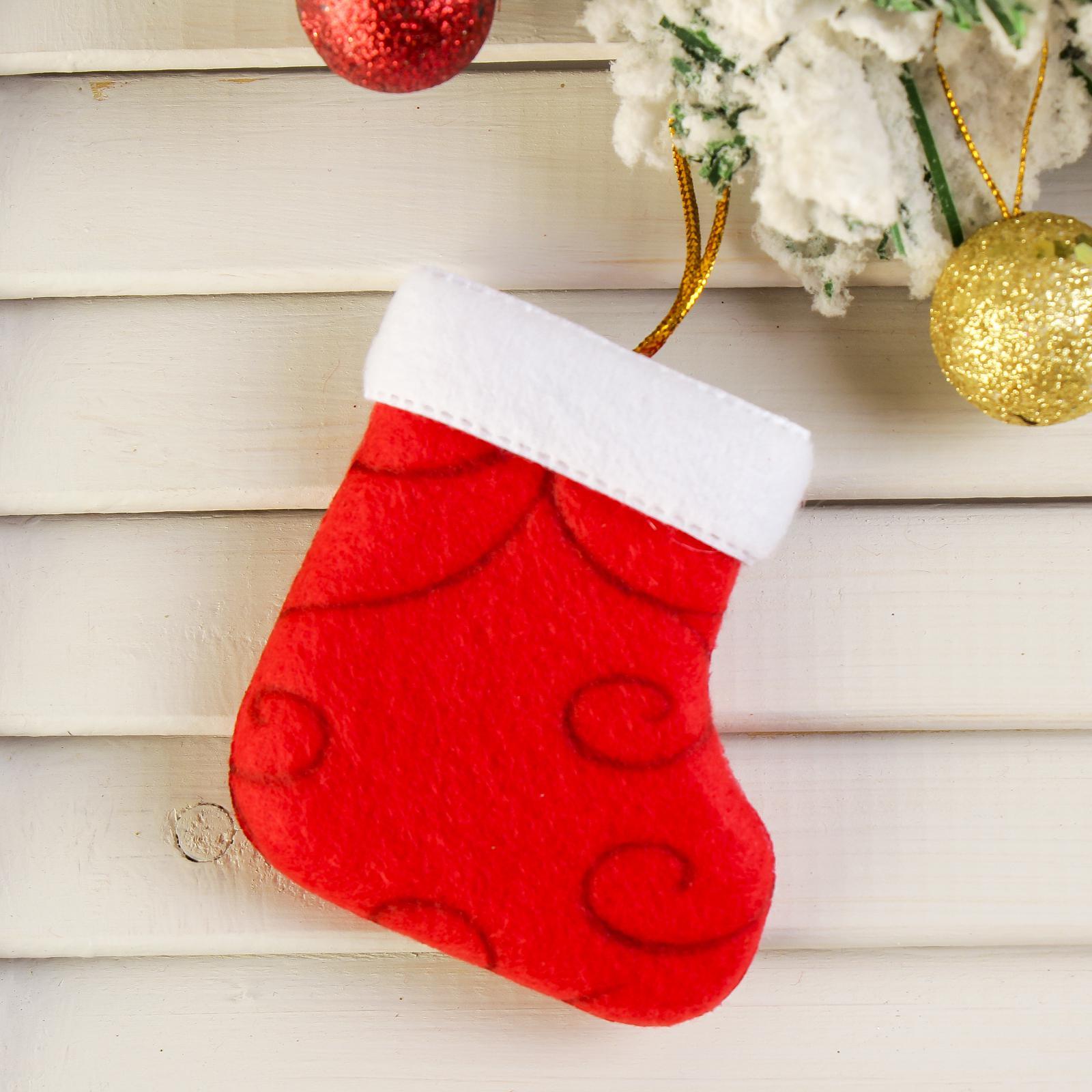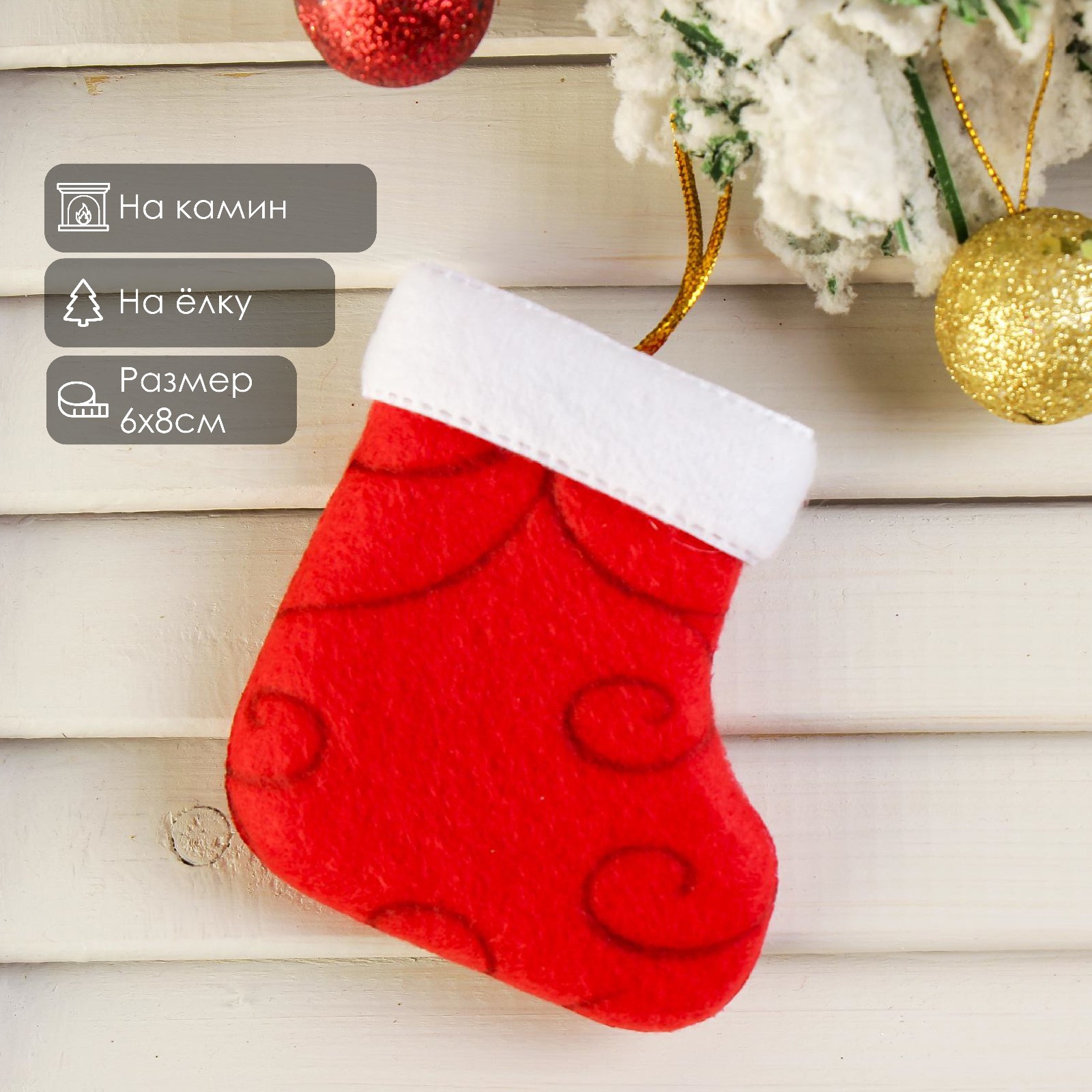 Подвеска на ёлку «носок с узорами», мягкая, 6 8 см, красный