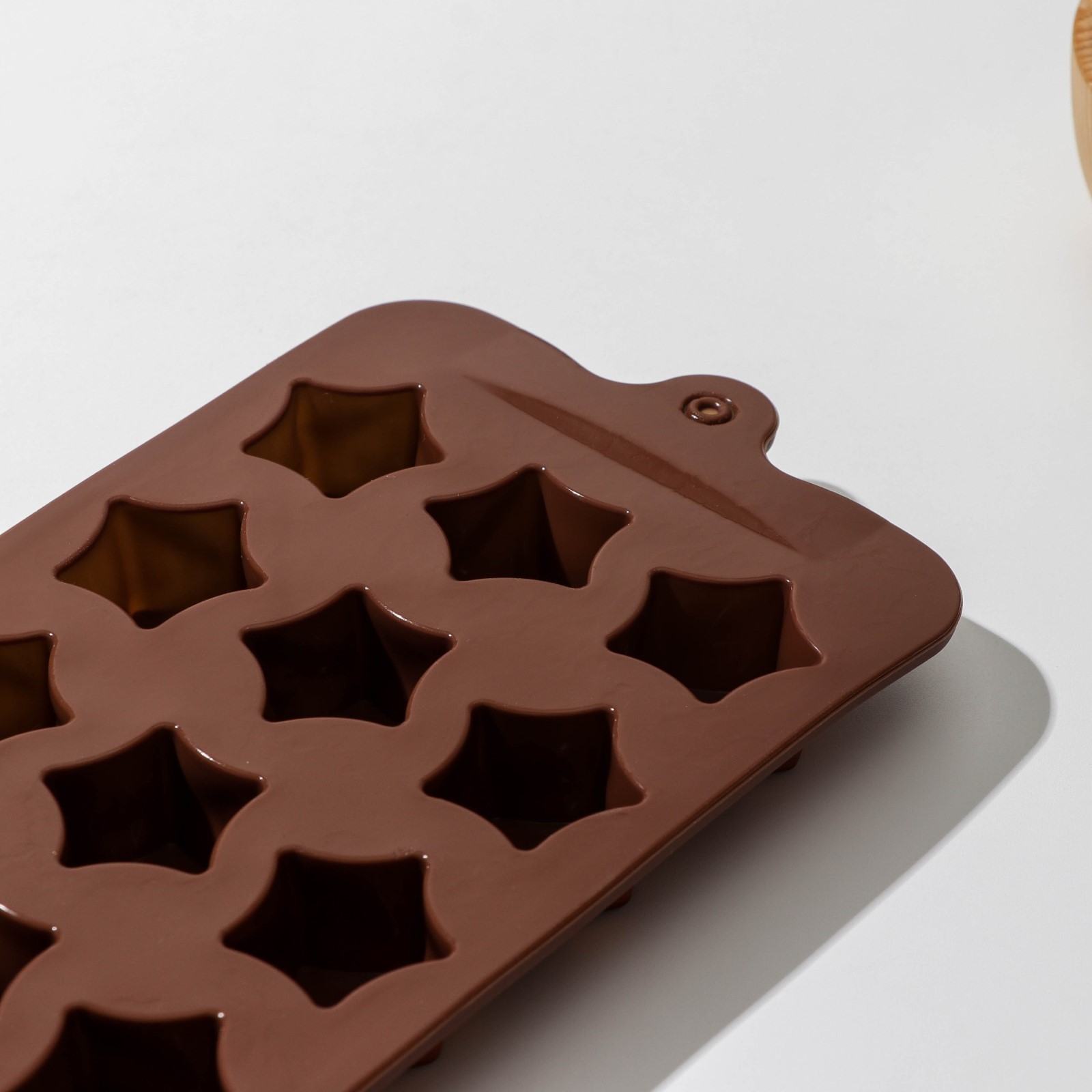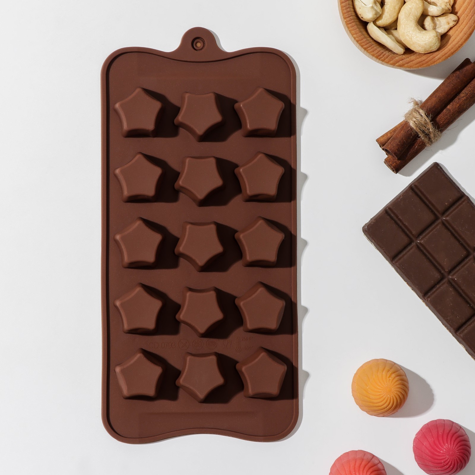 Форма для шоколада доляна «звёздочки», 21x10x2 см, 15 ячеек, цвет коричневый