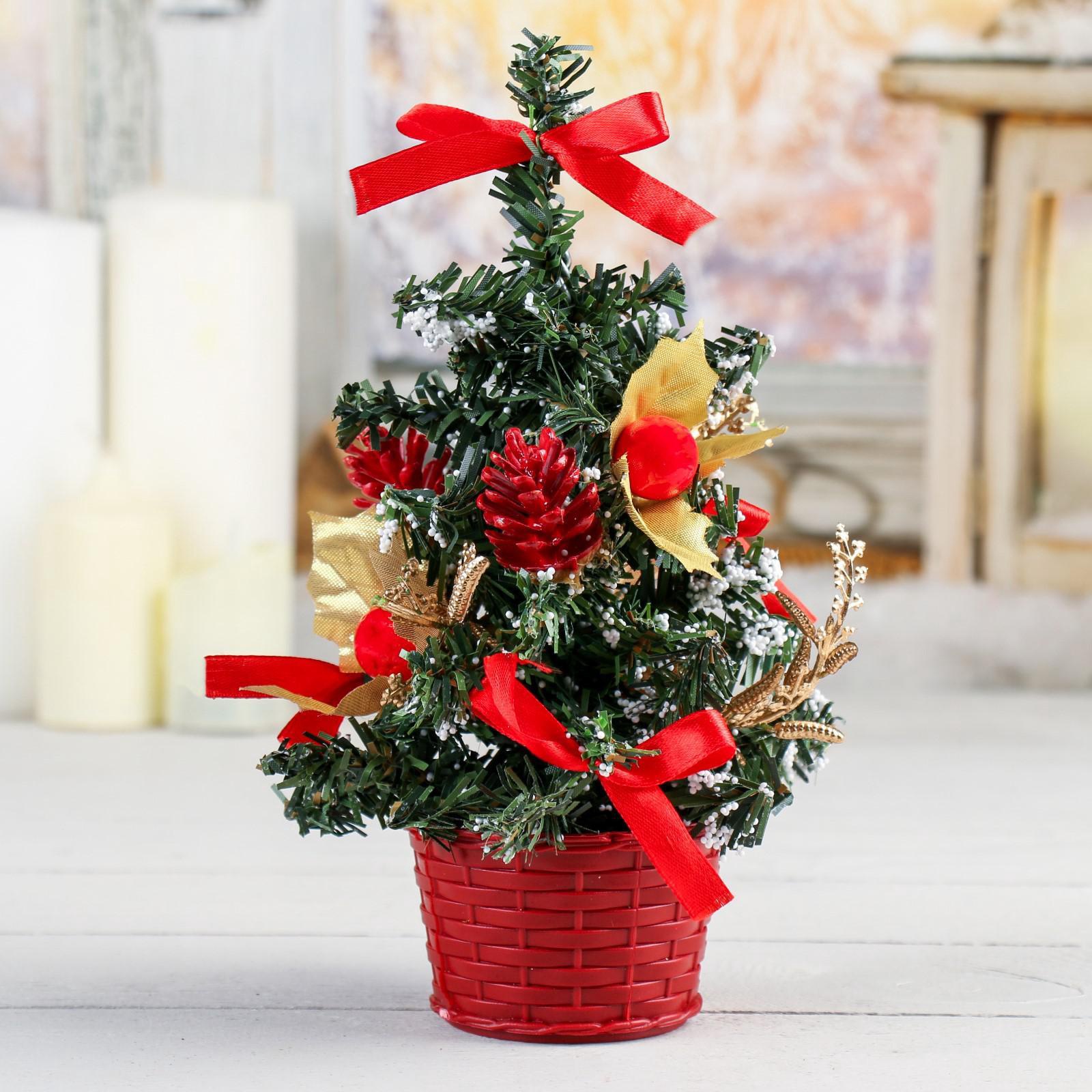 Искусственная ёлка настольная «зимнее волшебство. новогодний восторг», 20 см, красные банты, ветки пвх отгибаются.   Компактная настольная ёлка высотой 20 см с зелёной хвоей и яркими красными бантами создаёт уютную атмосферу праздника в любом помещении, будь то дом, офис или учебное заведение. Её небольшие размеры делают её идеальным элементом декора, который легко вписывается в любое пространство, добавляя при этом нотки волшебства и радости. Отгибающиеся ветки из ПВХ позволяют легко формировать ёлку, придавая ей естественный объём и аккуратный вид, что делает её не только красивой, но и практичной. Особенности Небольшой диаметр нижнего яруса делает ёлку удобной для размещения на столе, полке или в любом другом месте, где вы хотите создать праздничное настроение. Благодаря своим компактным размерам, она не занимает много места, что позволяет использовать её даже в небольших помещениях.Гибкие ветки обеспечивают простоту в украшении и настройке формы, позволяя вам легко адаптировать ёлку под свои предпочтения. Вы можете экспериментировать с её формой, создавая уникальные композиции, которые будут радовать глаз и поднимать настроение.Красные банты и снежный декор, украшающие ёлку, подчёркивают праздничное настроение и прекрасно сочетаются с различными стилями оформления — от скандинавского и датского до ар-деко, классики и шебби-шика. Это делает ёлку универсальным элементом декора, который гармонично впишется в любой интерьер.Материалы, из которых изготовлена ёлка — пластик и ПВХ — гарантируют долговечность и лёгкий уход. Это означает, что вы сможете наслаждаться её красотой на протяжении многих сезонов, не беспокоясь о необходимости сложного обслуживания. Просто протрите ёлку влажной тряпкой, и она будет выглядеть как новая.Праздничный акцент Эта миниатюрная ёлка добавляет нотки зимнего волшебства и наполняет пространство теплом и радостью новогодних дней. Она станет не только украшением вашего интерьера, но и символом семейных встреч и дружеских посиделок в это особенное время года. Разместив её на видном месте, вы создадите атмосферу уюта и тепла, которая будет радовать вас и ваших близких. Кроме того, такая ёлка может стать замечательным подарком для друзей и родных, добавляя каплю волшебства в их новогодние праздники. Её компактные размеры и универсальный дизайн делают её отличным вариантом для любого случая, а яркие красные банты и зелёная хвоя создают праздничное настроение, которое будет радовать глаз и поднимать дух в течение всего зимнего сезона. Набор:Нет|Высота, см:20|Диаметр нижнего яруса, см:11|Символ года:Нет|Тематика праздника:Новый год|Материал:Пластик|Материал:ПВХ|Работает от сети:Нет|Тип ёлки:Настольная|Тип веток:ПВХ|Крепление веток:Отгибающиеся|Особенности декора:Ёлочные украшения|Особенности декора:Снег|Стиль:Советский|Стиль:Новогоднее барокко|Стиль:Шебби-шик|Стиль:Скандинавский|Стиль:Классика|Стиль:Фьюжн|Стиль:Датский|Стиль:Ар-деко|Цвет хвои:Зелёный|Цвет декора:Красный|Страна:Китай  развернуть описание ▼