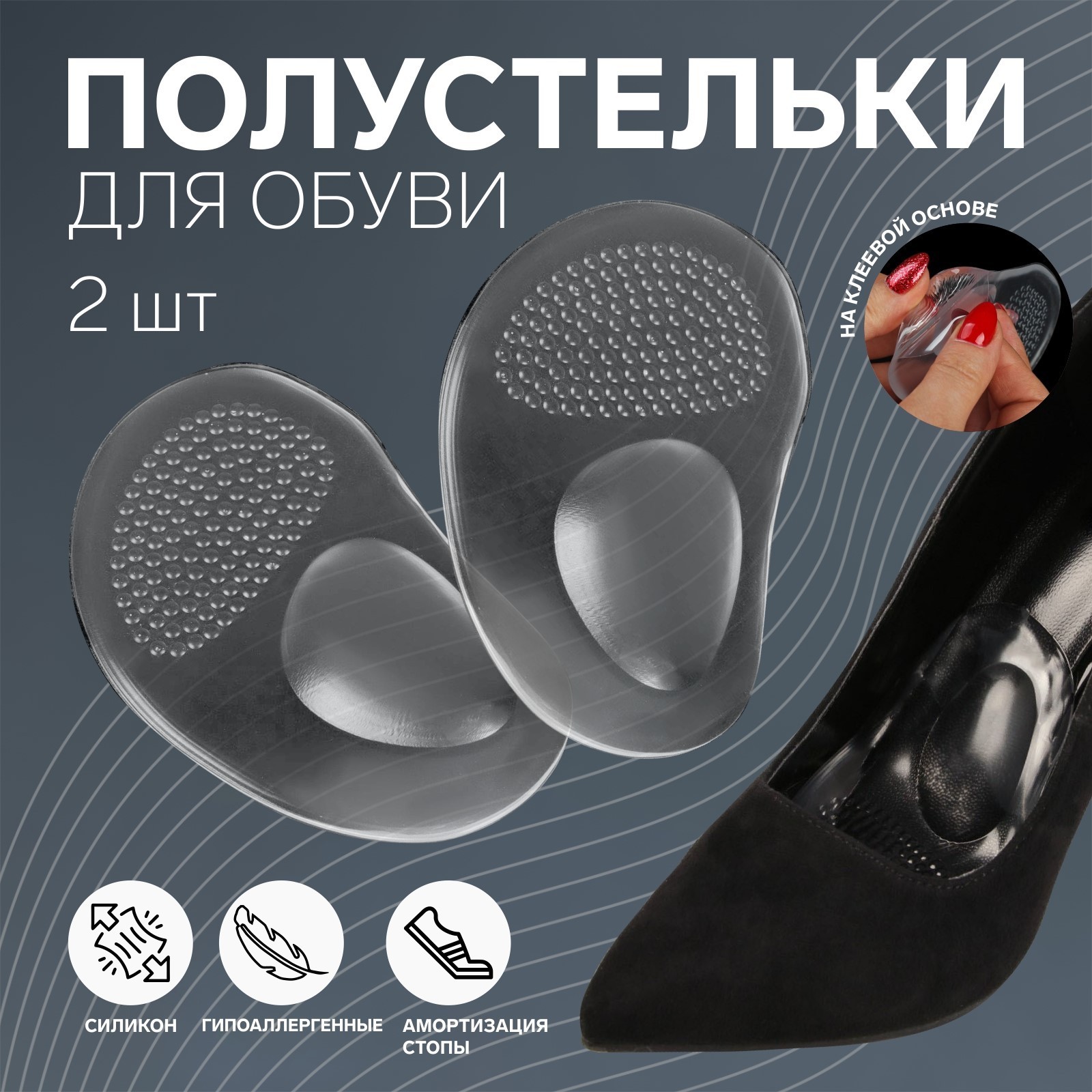 Полустельки для обуви, с протектором, на клеевой основе, силиконовые, 10,5 X 6,5 см, пара, цвет прозрачный