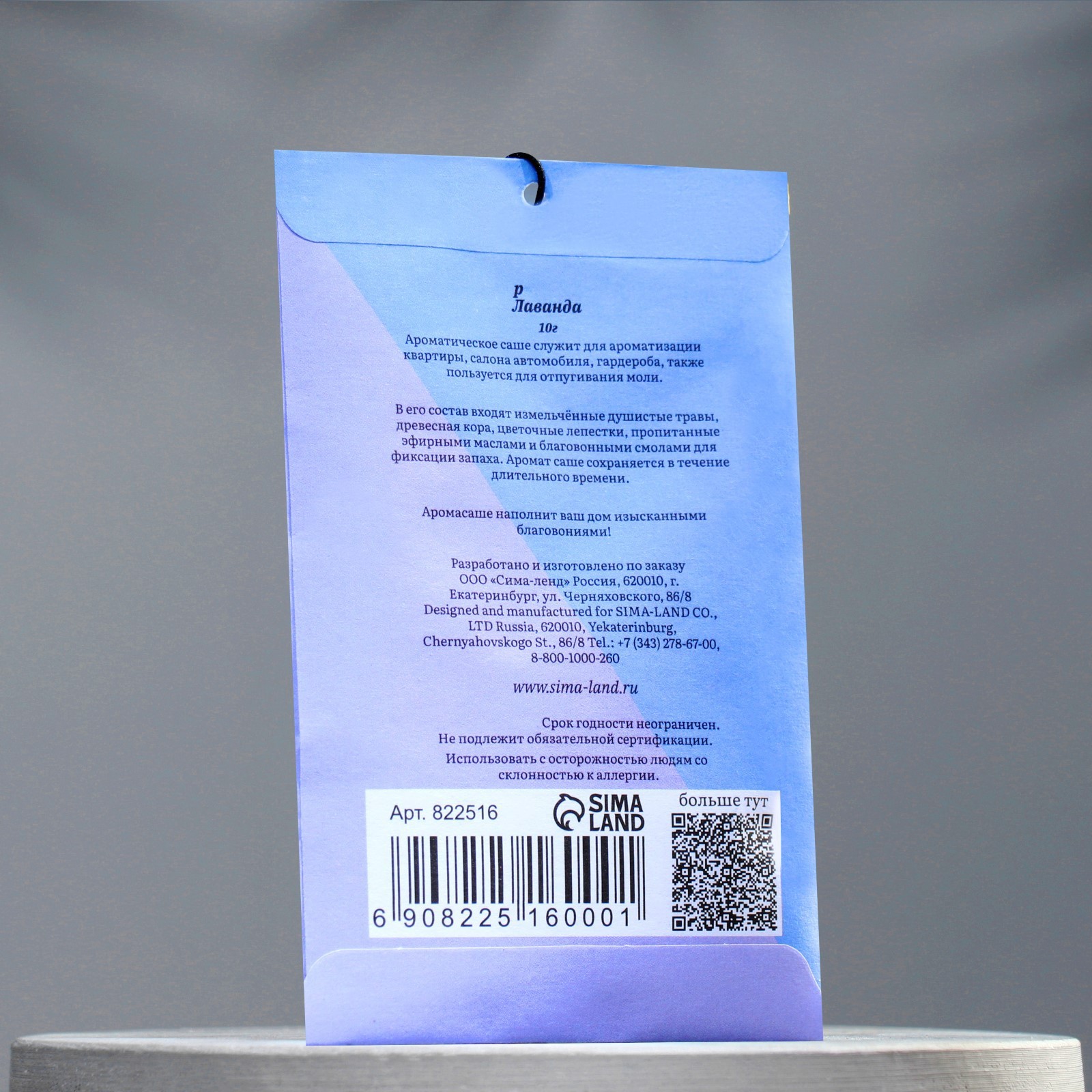 Саше ароматическое "лаванда", 10 г, "богатство аромата". Аромасаше — самый простой способ придать окружающим нас вещам и помещению отличный запах. Ранее саше было непременным атрибутом в доме каждой леди, а сейчас стало вполне доступной роскошью, которая создаст комфортные условия для отдыха, расслабления или же, в зависимости от выбора конкретного аромата, наоборот, — для активной и плодотворной работы. Правильно подобранный аромат позволит создать приятную и располагающую обстановку дома. Вид ароматизатора: Бумажный Аромат: Лаванда  развернуть описание ▼