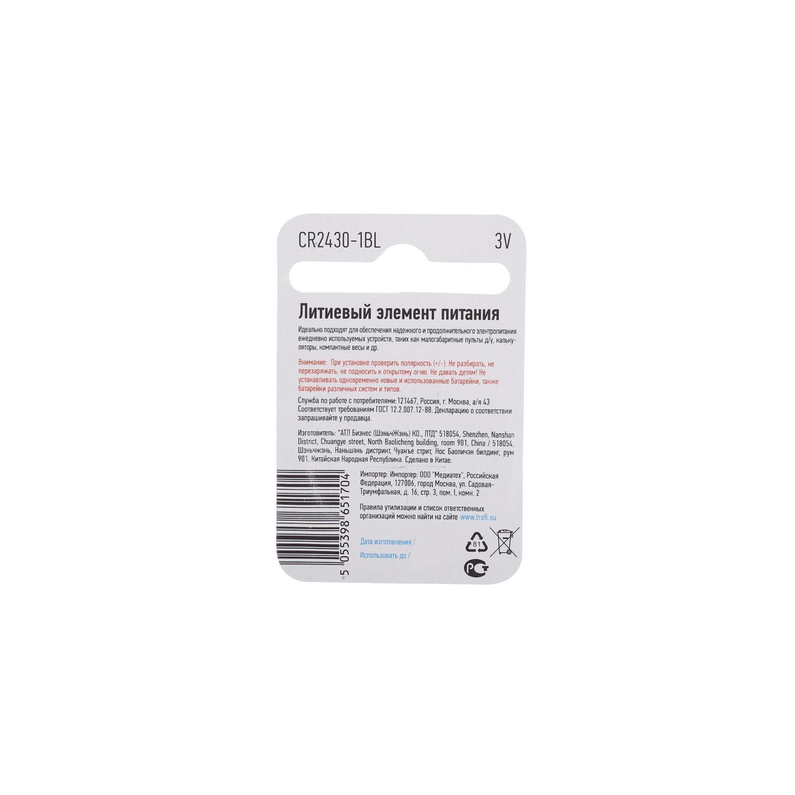 Батарейка литиевая "трофи", Cr2430-1bl, 3в, блистер, 1 шт.