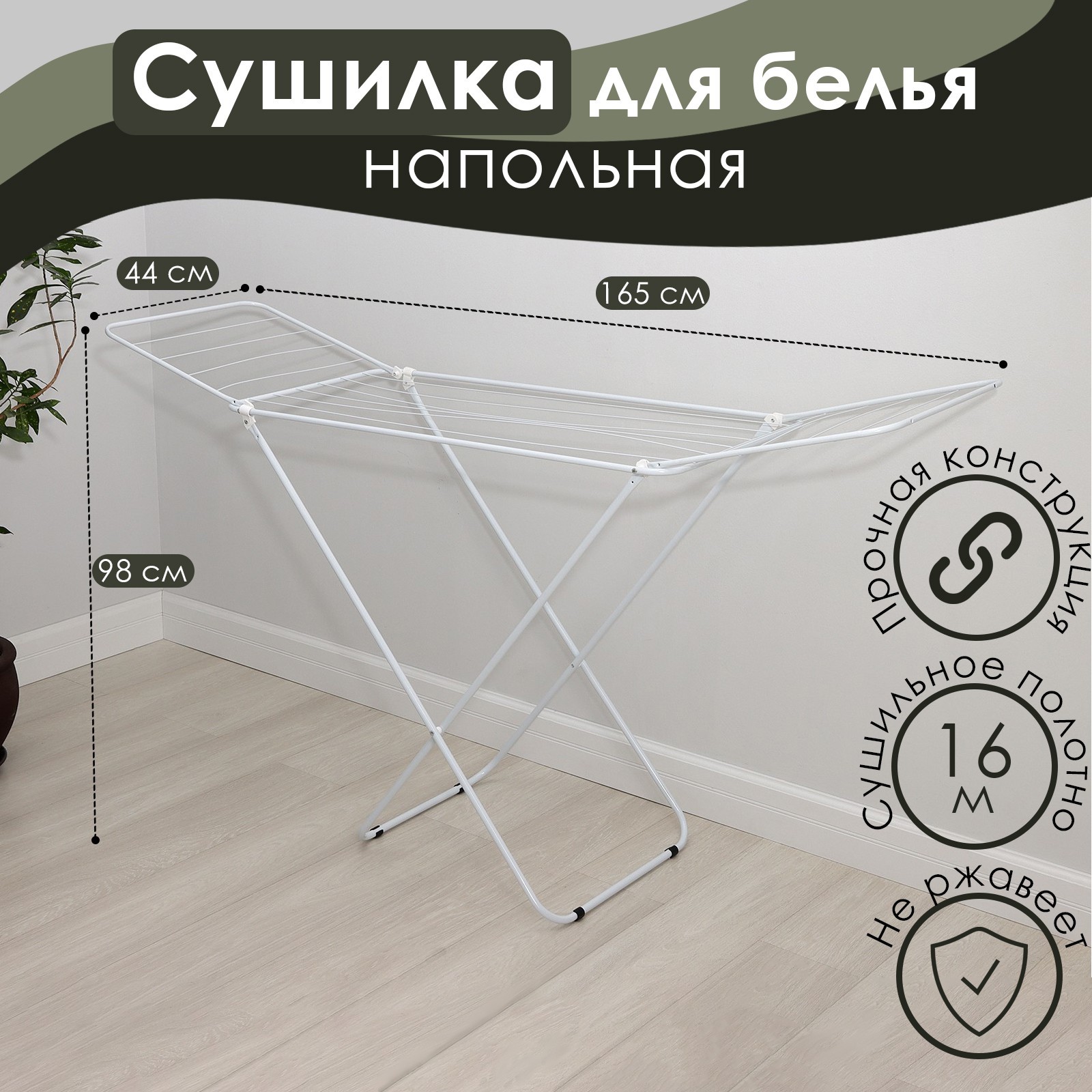 Сушилка для белья напольная складная доляна, рабочая длина 16 м, цвет белый