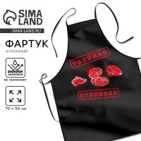 Фартук кухонный «убойная отбивная». Для мужчин, чьим неизменным пристрастием является не только вкусная еда, но и процесс её приготовления, придётся по душе наша эксклюзивная разработка фартук кухонный «Убойная отбивная». Веселый принт изделия не оставит никого равнодушным, а его размер сохранит вашу одежду чистой без единого пятнышка! Для фартука применима ручная и машинная стирка. Он станет прекрасным подарком на новоселье, день рождения или просто по случаю званого ужина с друзьями. Набор:Нет|Цвет:Чёрный|Для кого:Для мужчины|Ткань:Полиэстер|Размер, см:50 х 70|Вид застёжки:Завязки|Тематика:Надписи, цифры, буквы|Тематика:Мужская|Вид упаковки:Пакет|Тематика праздника:Универсальная тематика|Возраст:Взрослый|Декоративные элементы:Без элементов|Состав ткани:Полиэстер|Страна:Россия  развернуть описание ▼