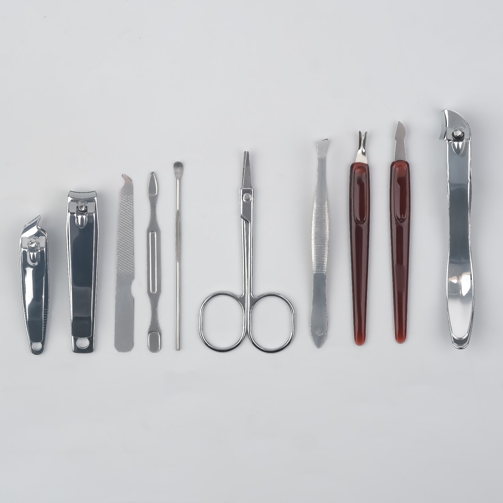 Набор маникюрный, 10 предметов, в футляре, цвет коричневый