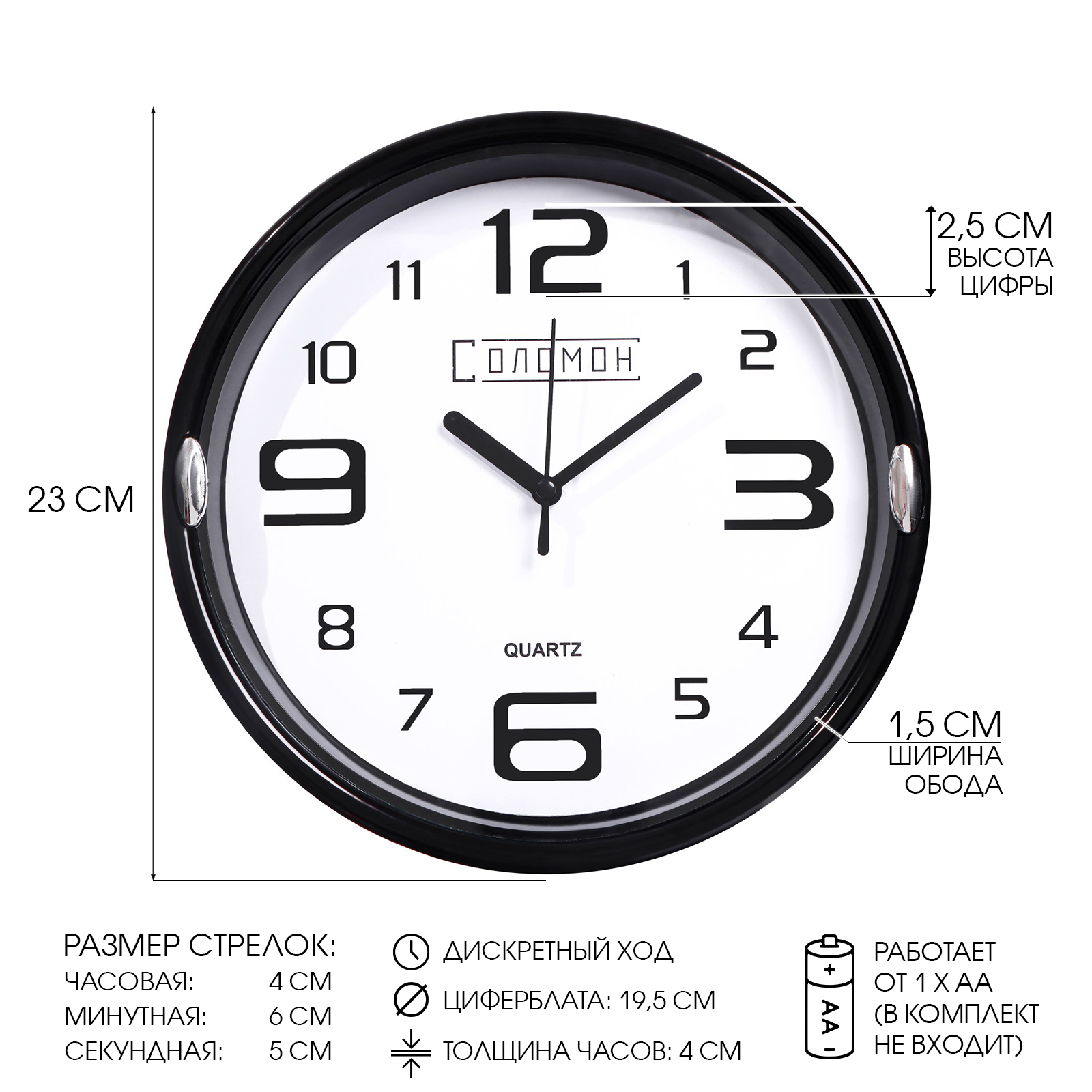 Часы настенные числа, D=23 см, черные