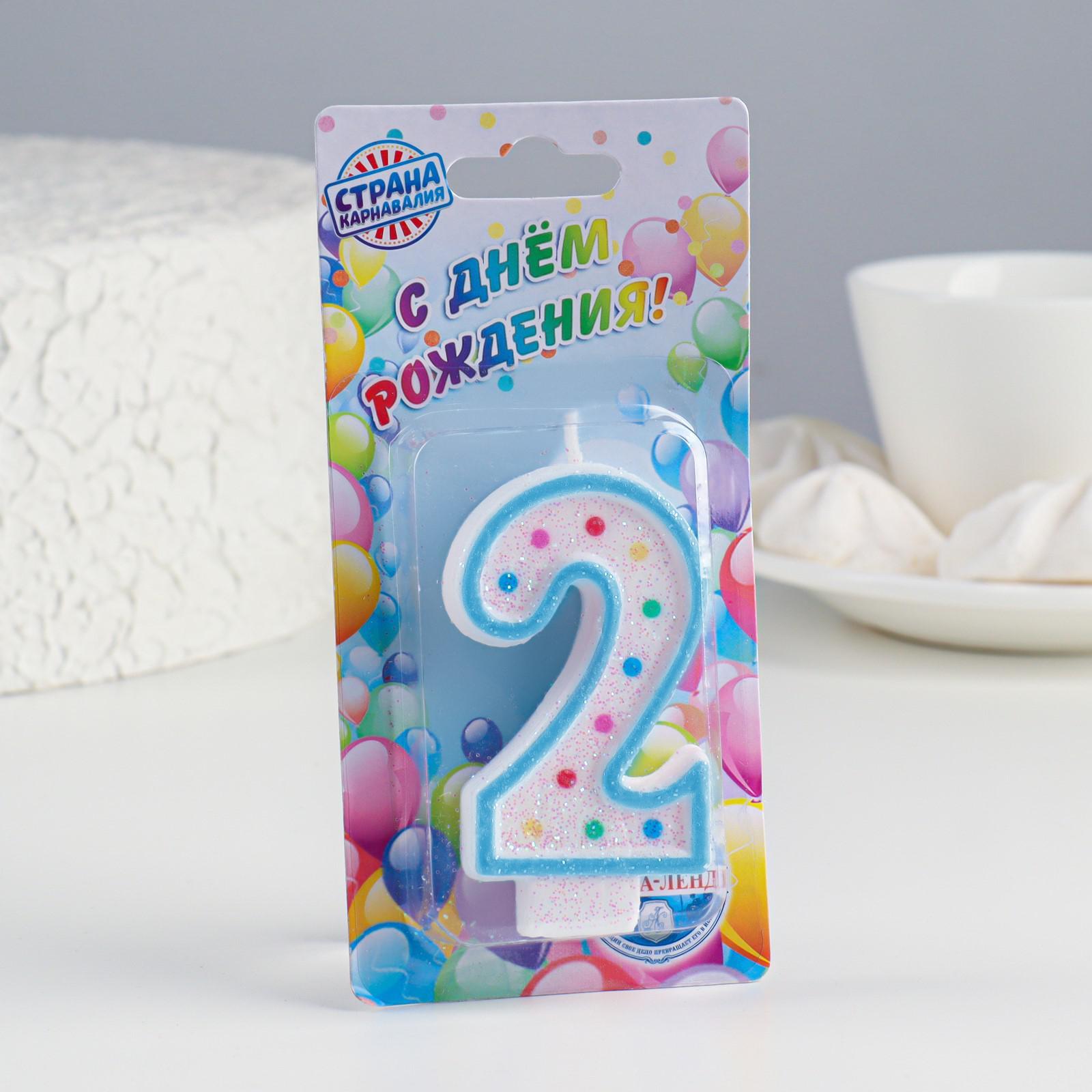 Свеча для торта « горошек» , цифра 2, блестки, 7 см, микс