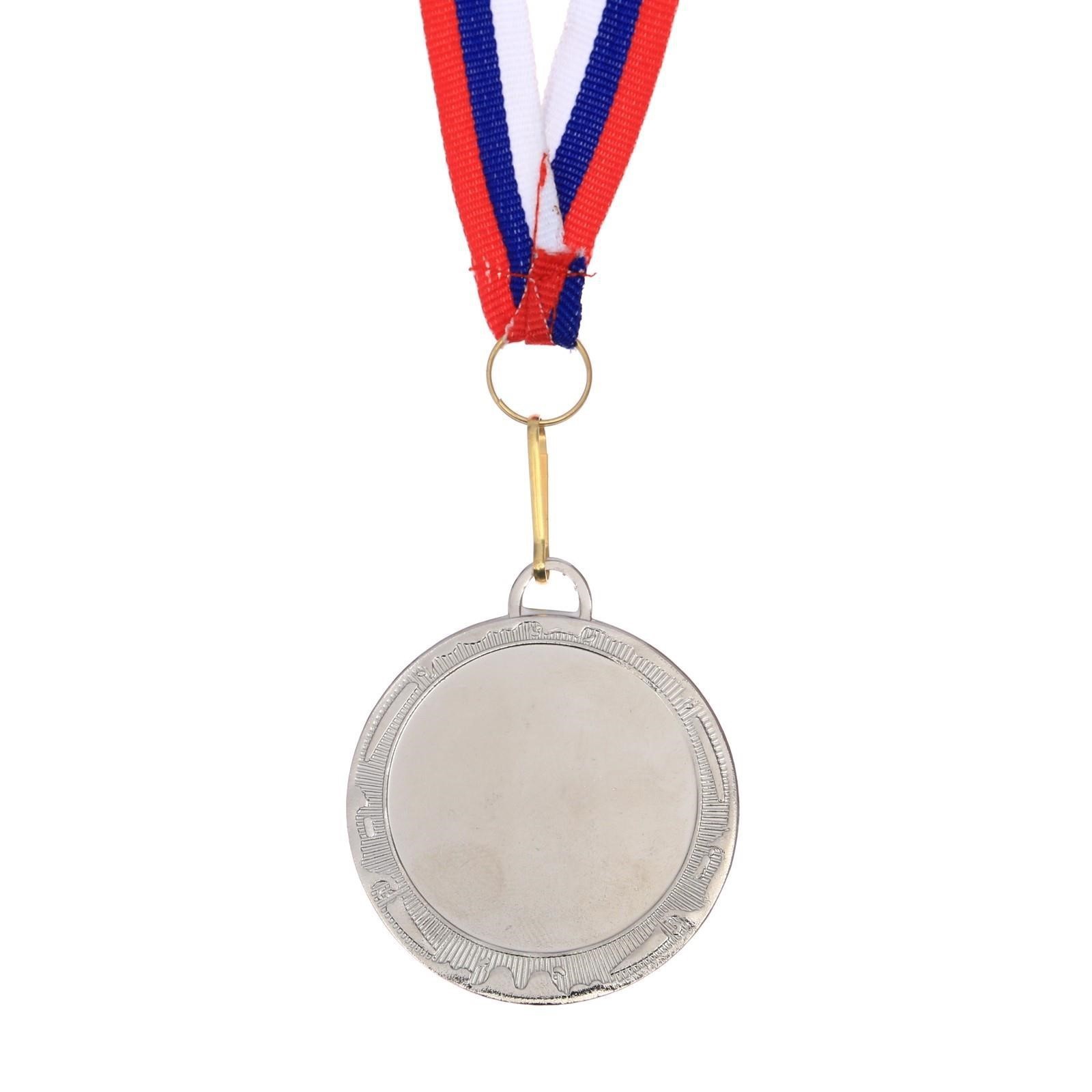 Медаль призовая 002, d= 5 см. 2 место. цвет серебро. с лентой. Медаль — знак отличия, которым награждают самых достойных. Она вручается лишь тем, кто проявил настойчивость и волю к победе. Каждое достижение — это важное событие, которое должно остаться в памяти на долгие годы. Любое спортивное состязание, профессиональное или среди любителей, любое корпоративное мероприятие — отличный повод для того, чтобы отметить лучших из лучших. Цвет: Серебристый Для кого: Унисекс Диаметр, мм: 50 Вид упаковки: Пакет Адресат: Без адресата Материал: Металл Вид спорта: Универсальный Наличие символики РФ: Да Наличие ленты: Да Призовое место: 2 место  развернуть описание ▼