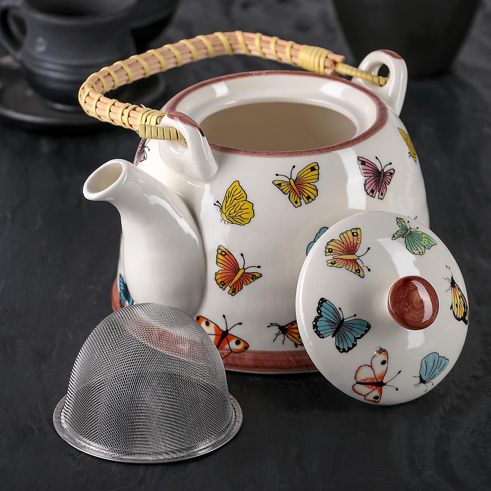 Чайник керамический заварочный с металлическим ситом «бабочки», 900 мл