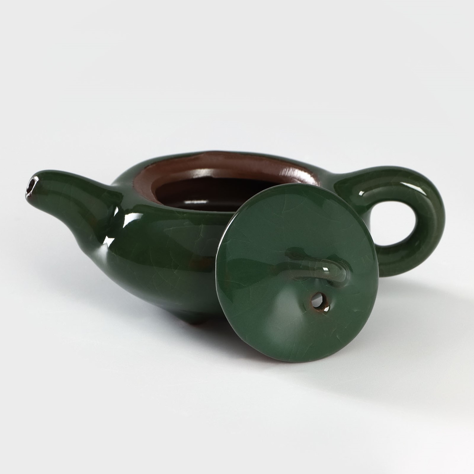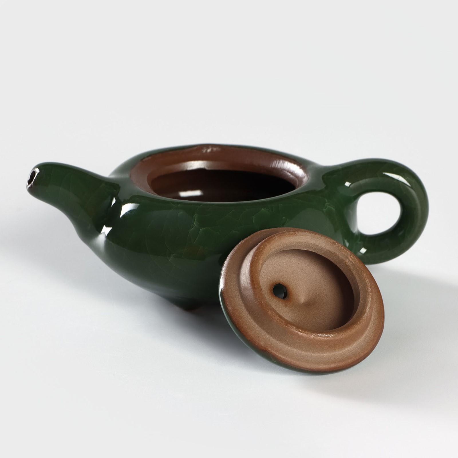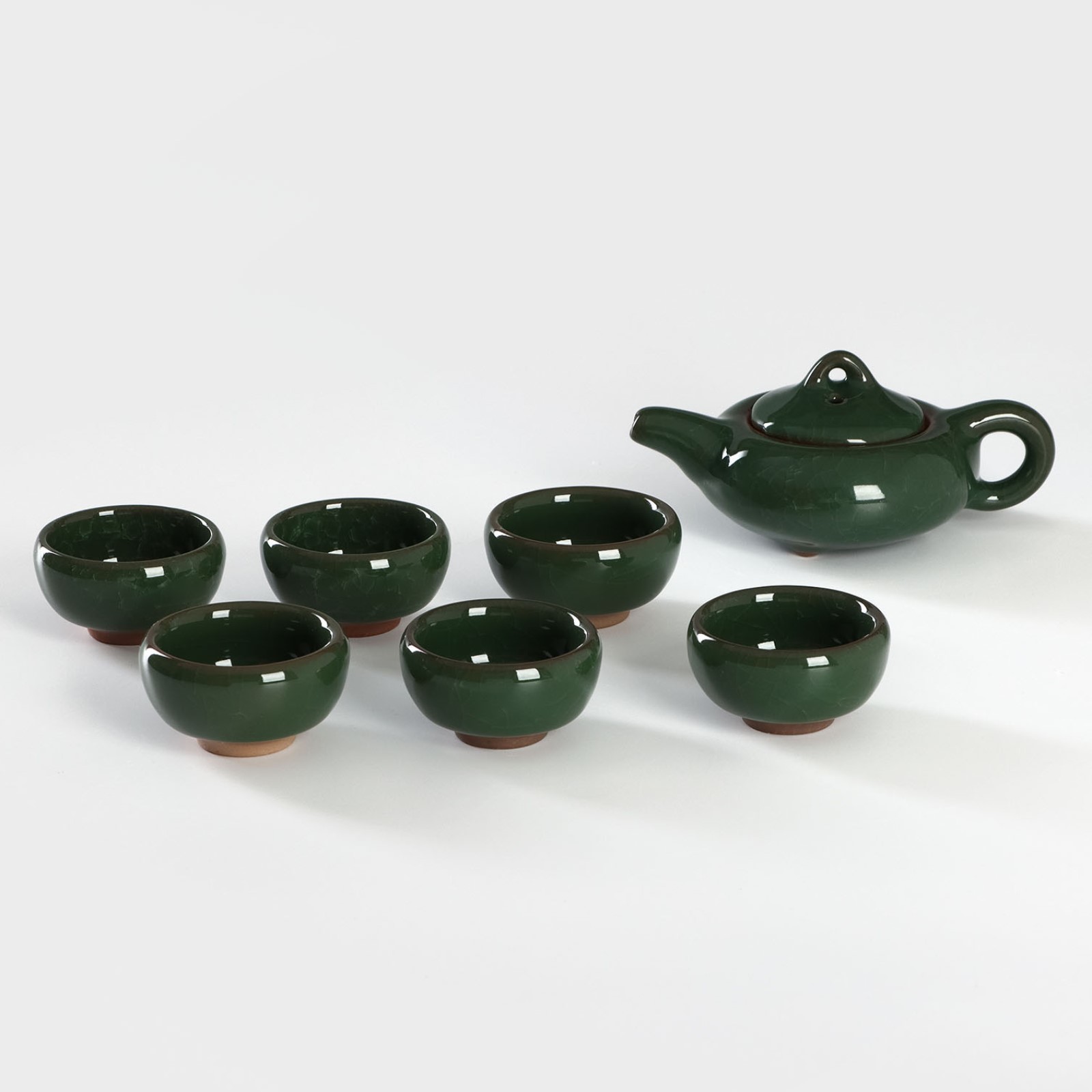 Набор для чайной церемонии керамический «лунный камень», 7 предметов: чайник 150 мл, 6 пиал 50 мл, цвет зелёный