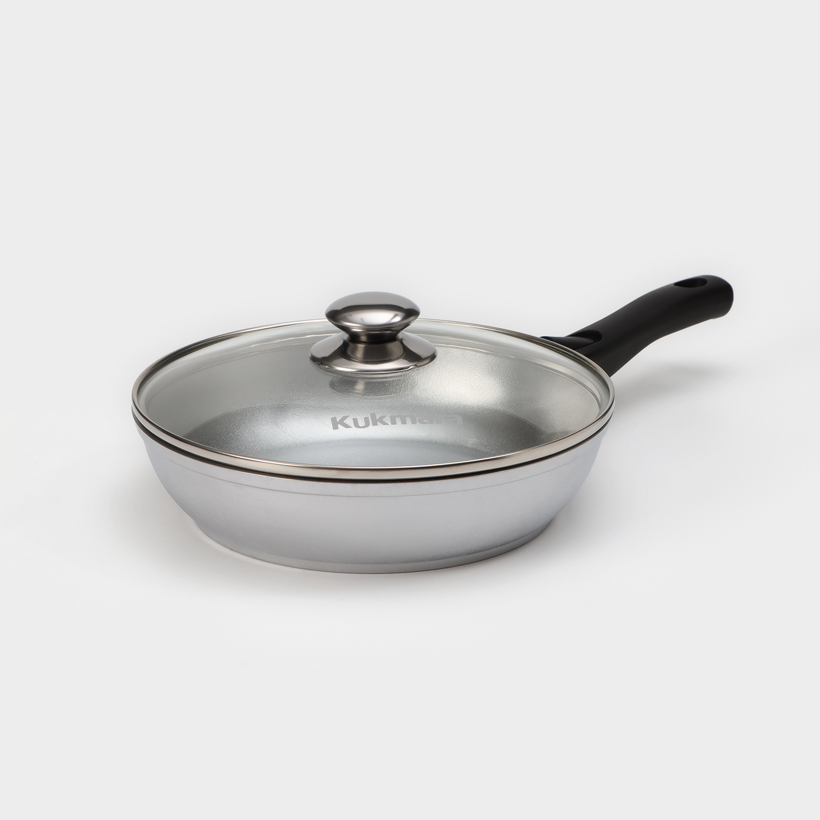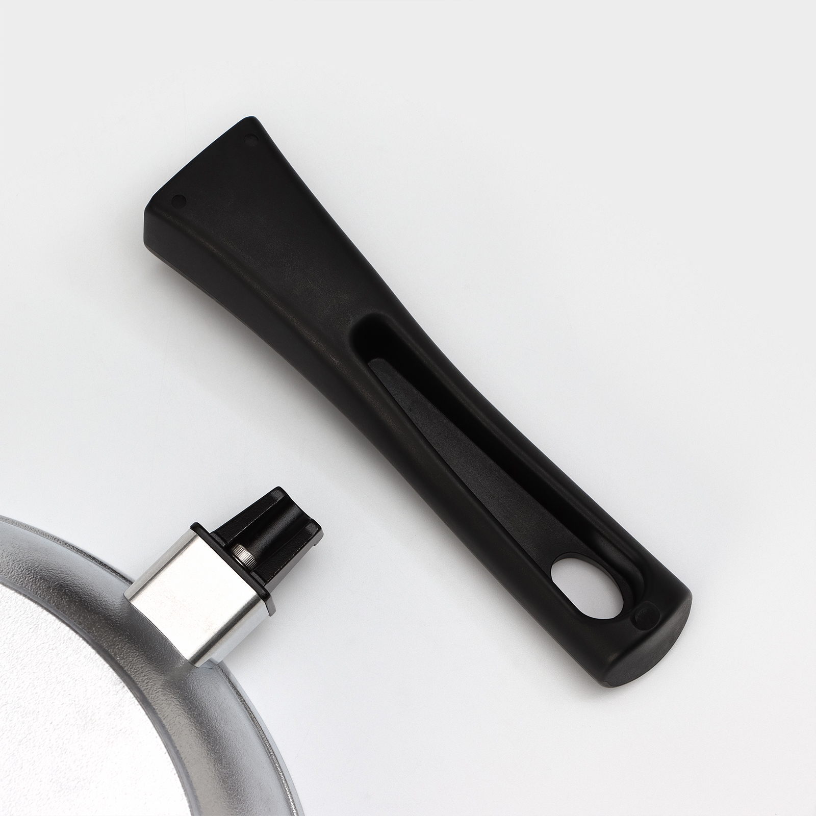 Сковорода, D=24 см, стеклянная крышка, съёмная ручка, цвет серый