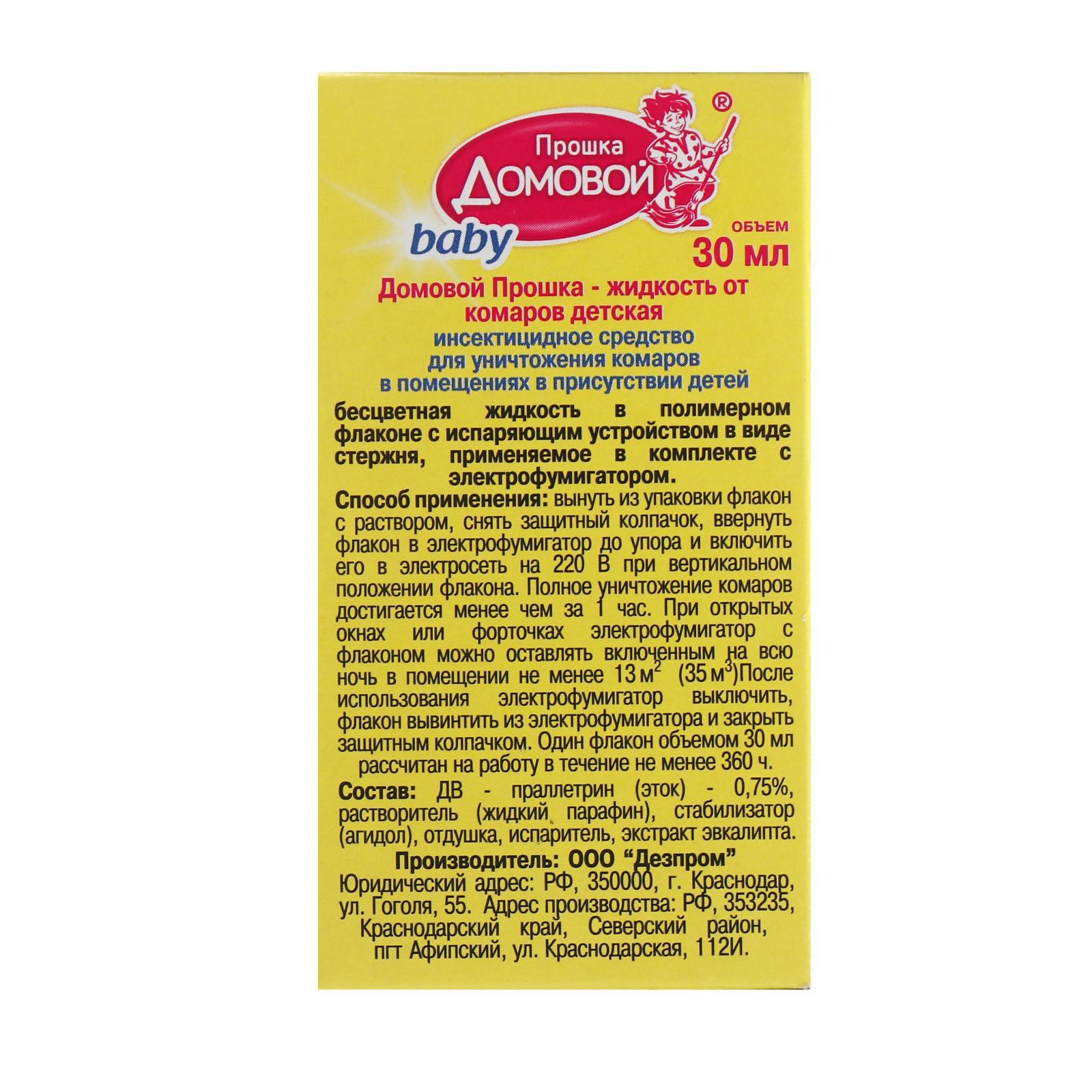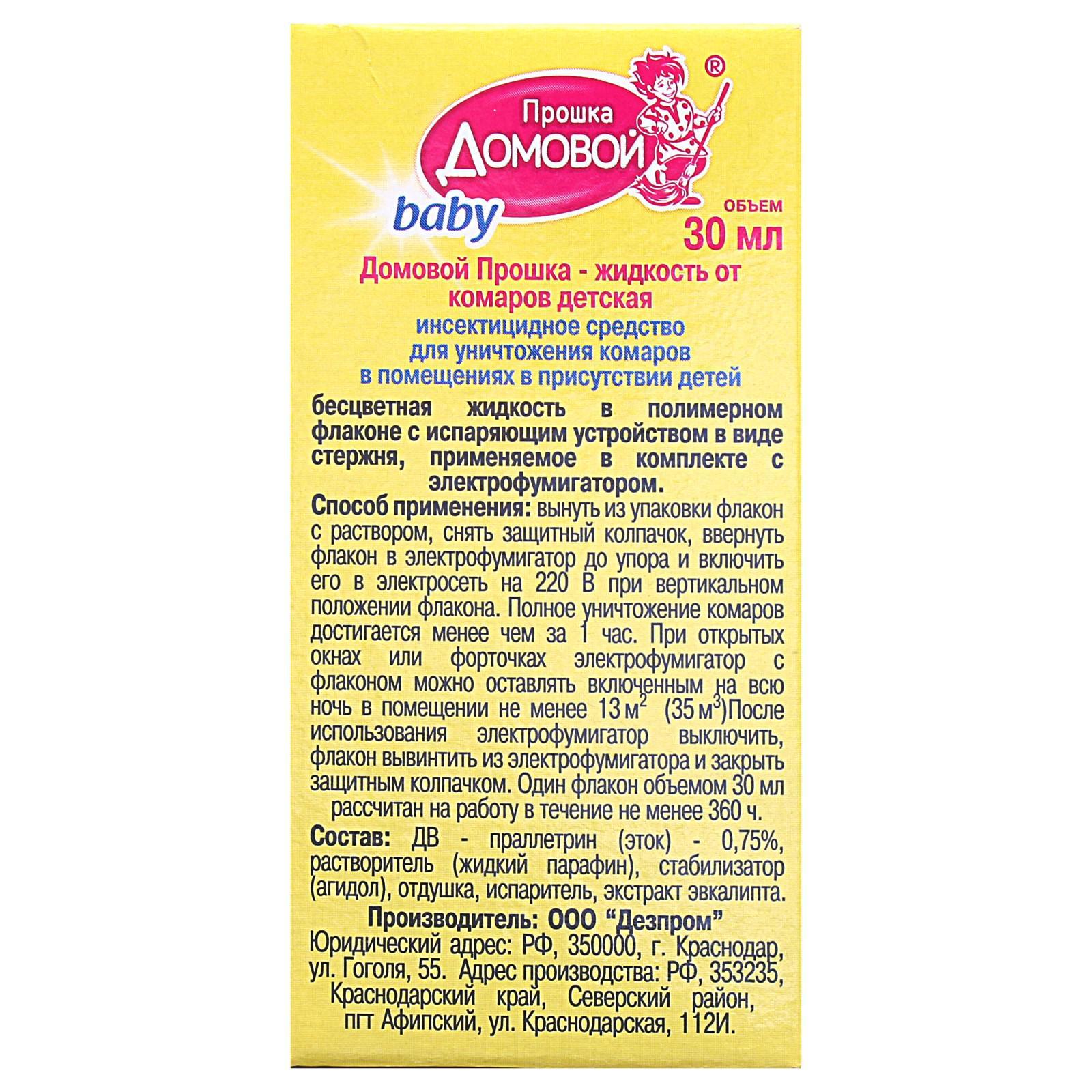 Дополнительный флакон-жидкость от комаров "домовой прошка", детский, без запаха, 30 мл