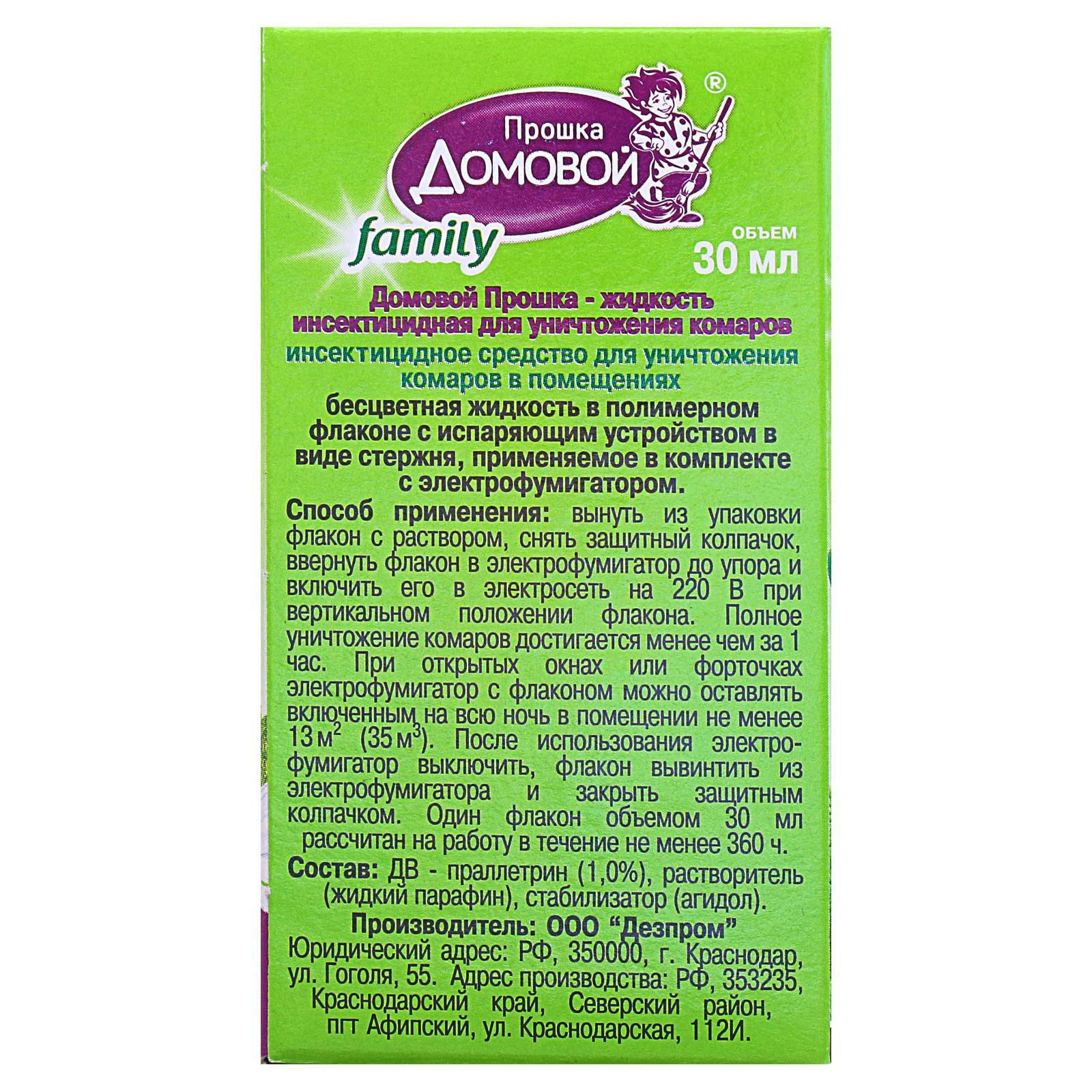 Дополнительный флакон-жидкость от комаров "домовой прошка", био, 45 ночей, флакон, 30 мл