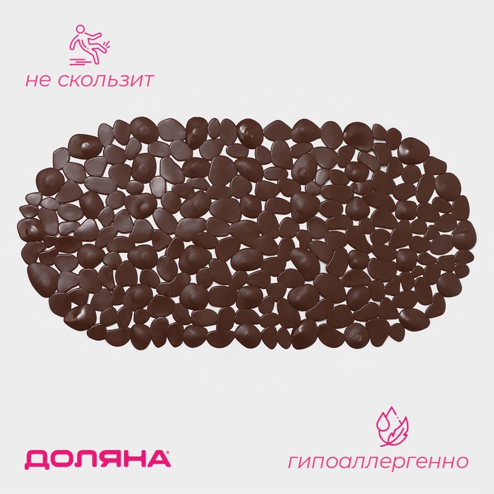 Коврик противоскользящий в ванну на присосках доляна «крупная галька», 33x63 см, цвет микс