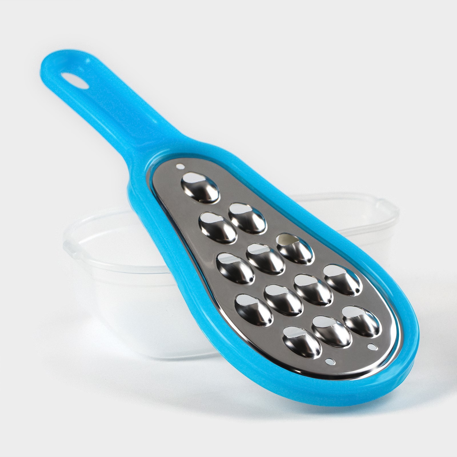 Тёрка с контейнером для детского питания доляна «груша», 16 см, крупная, цвет микс. Цвет: МИКС Число граней: 1 Материал ручки: Пластик Материал: Металл Контейнер: Да Противоскользящее основание: Нет  развернуть описание ▼