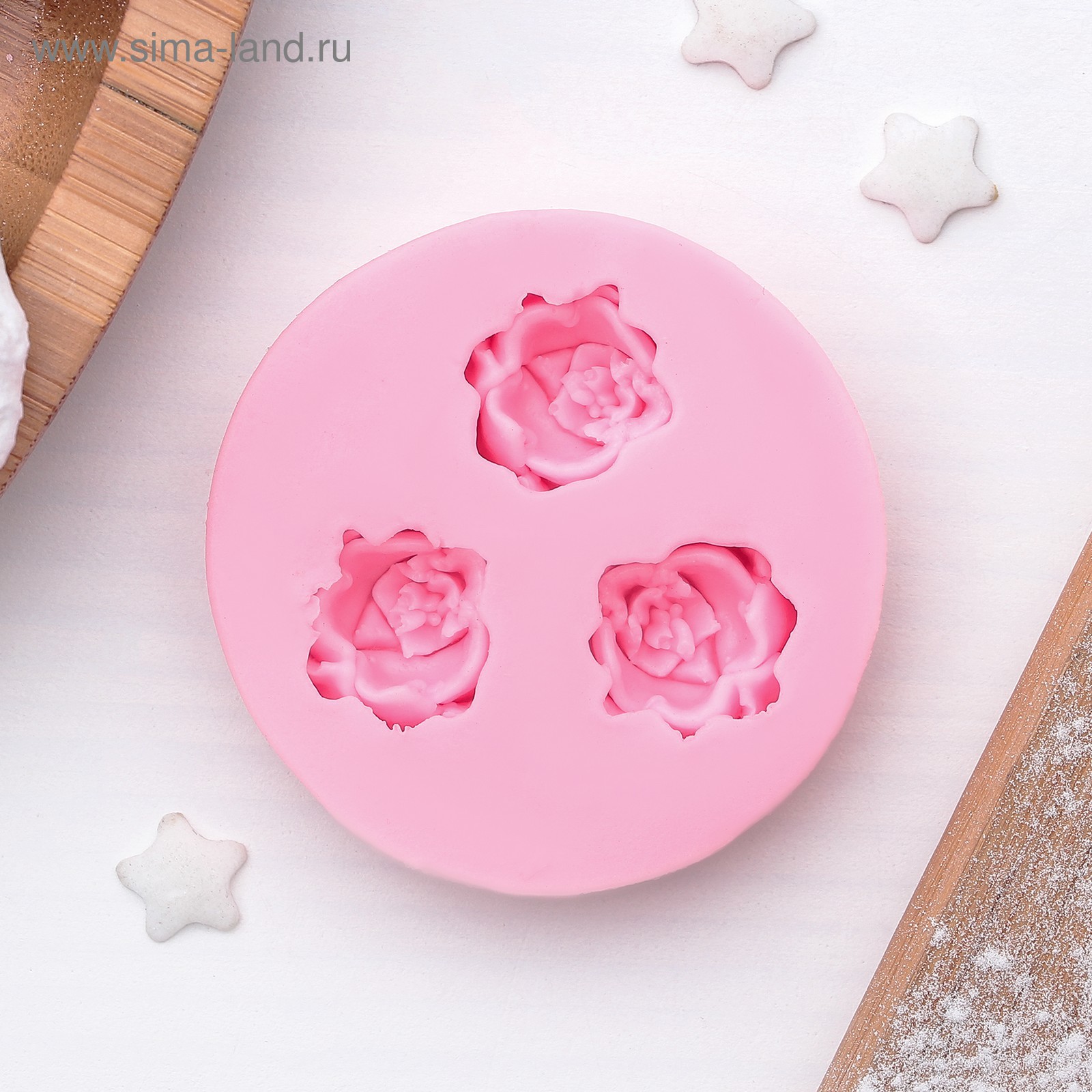 Силиконовый молд доляна «три малых розы», 4,5 см, цвет розовый