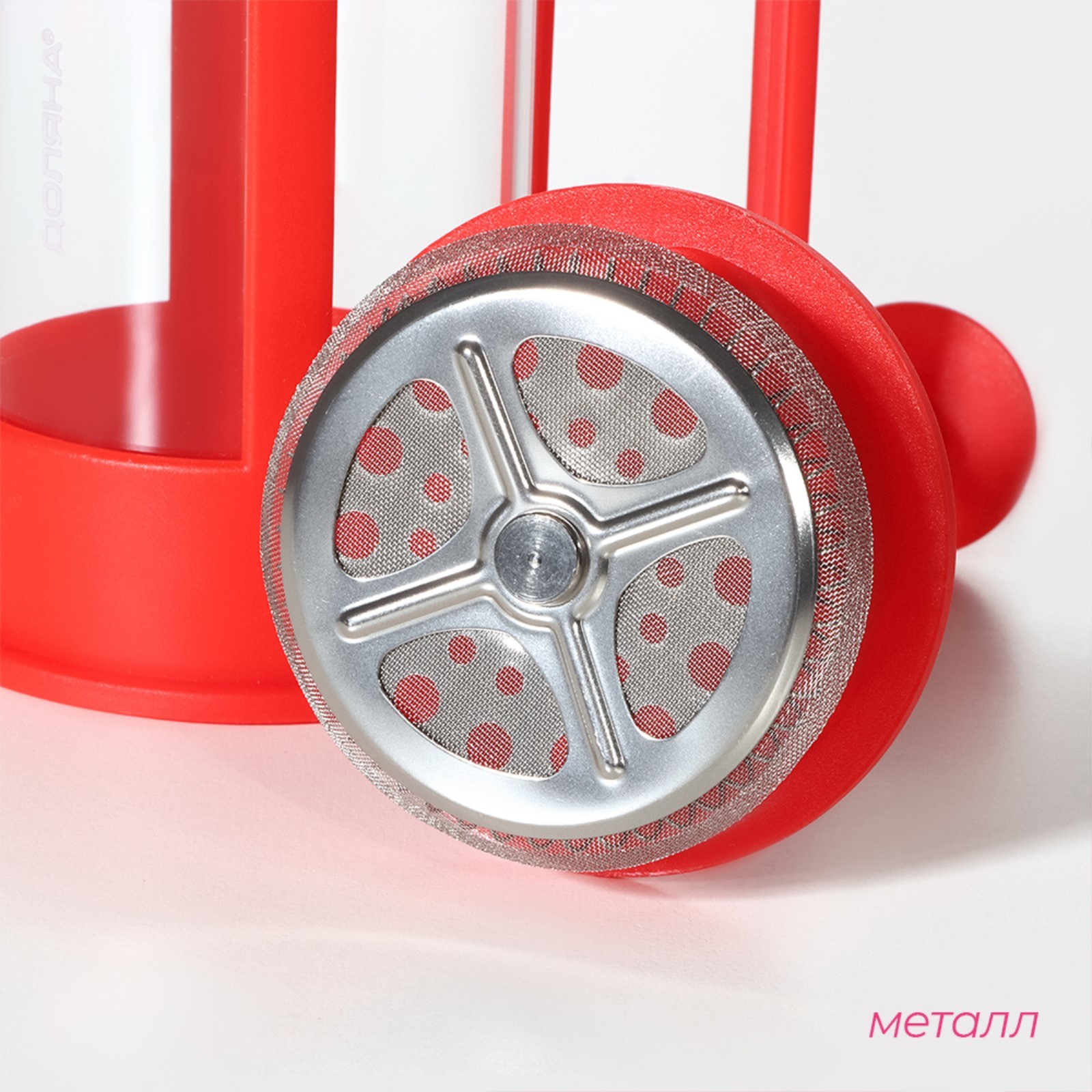 Чайник заварочный френч - пресс доляна «классика», 350 мл, стекло, цвет красный