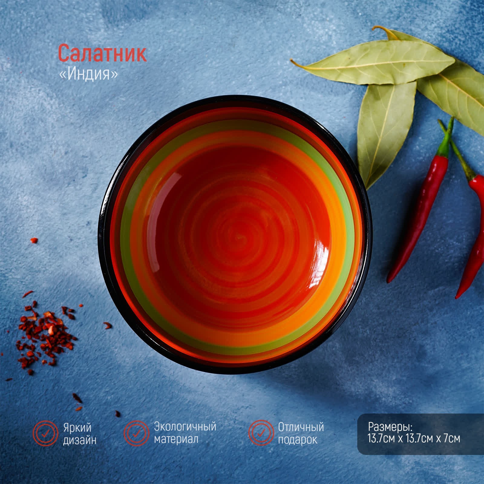 Салатник керамический доляна «индия», 600 мл, D=13,5 см, цвет оранжевый