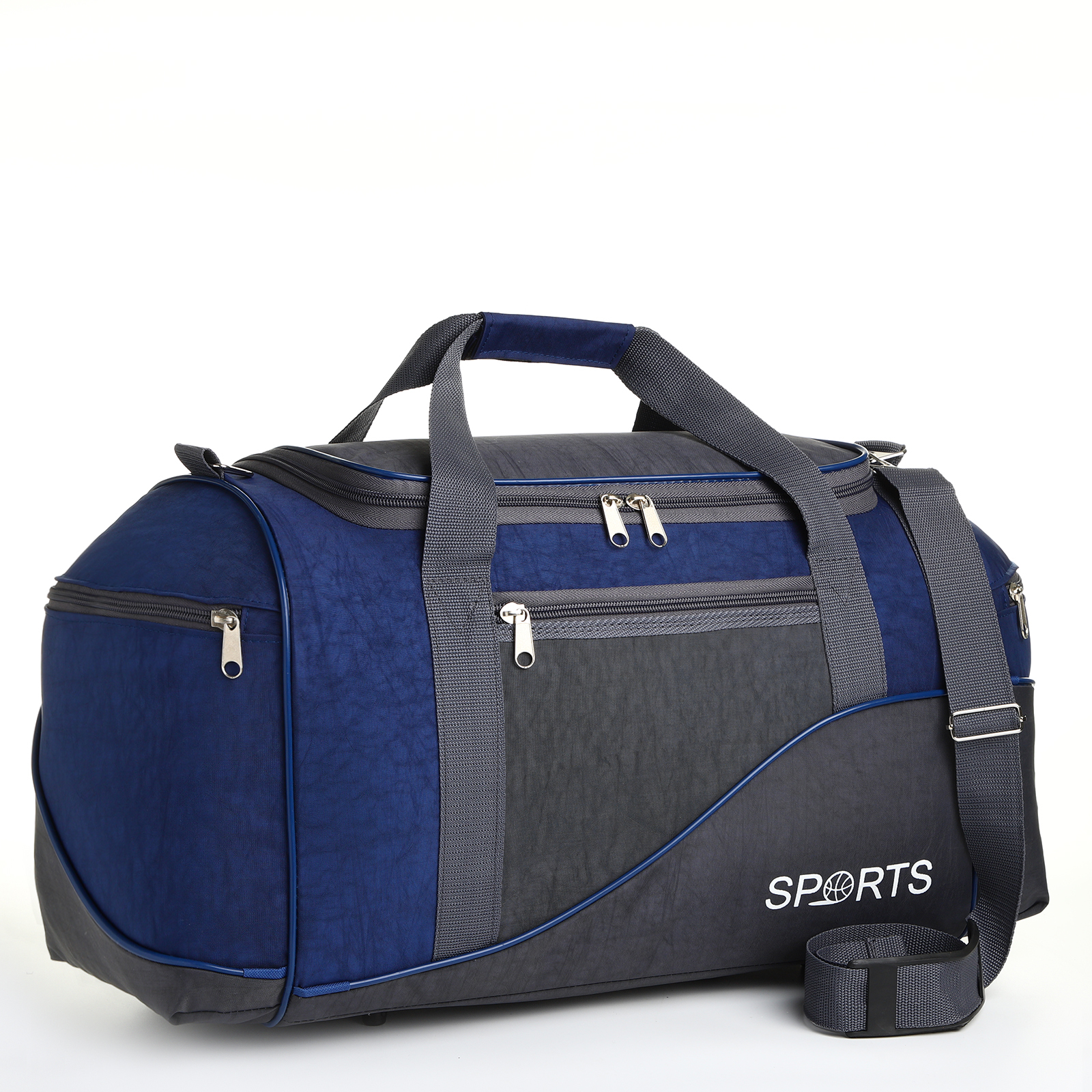 Сумка спортивная на молнии с подкладкой, 3 наружных кармана, большой размер, цвет серый/синий. Цвет: Синий Цвет: Серый Длина, см: 65 На колёсиках: Нет Материал: Текстиль Наличие символики РФ: Нет Модель сумки: Баул Дополнительный объём: Без увеличения  развернуть описание ▼