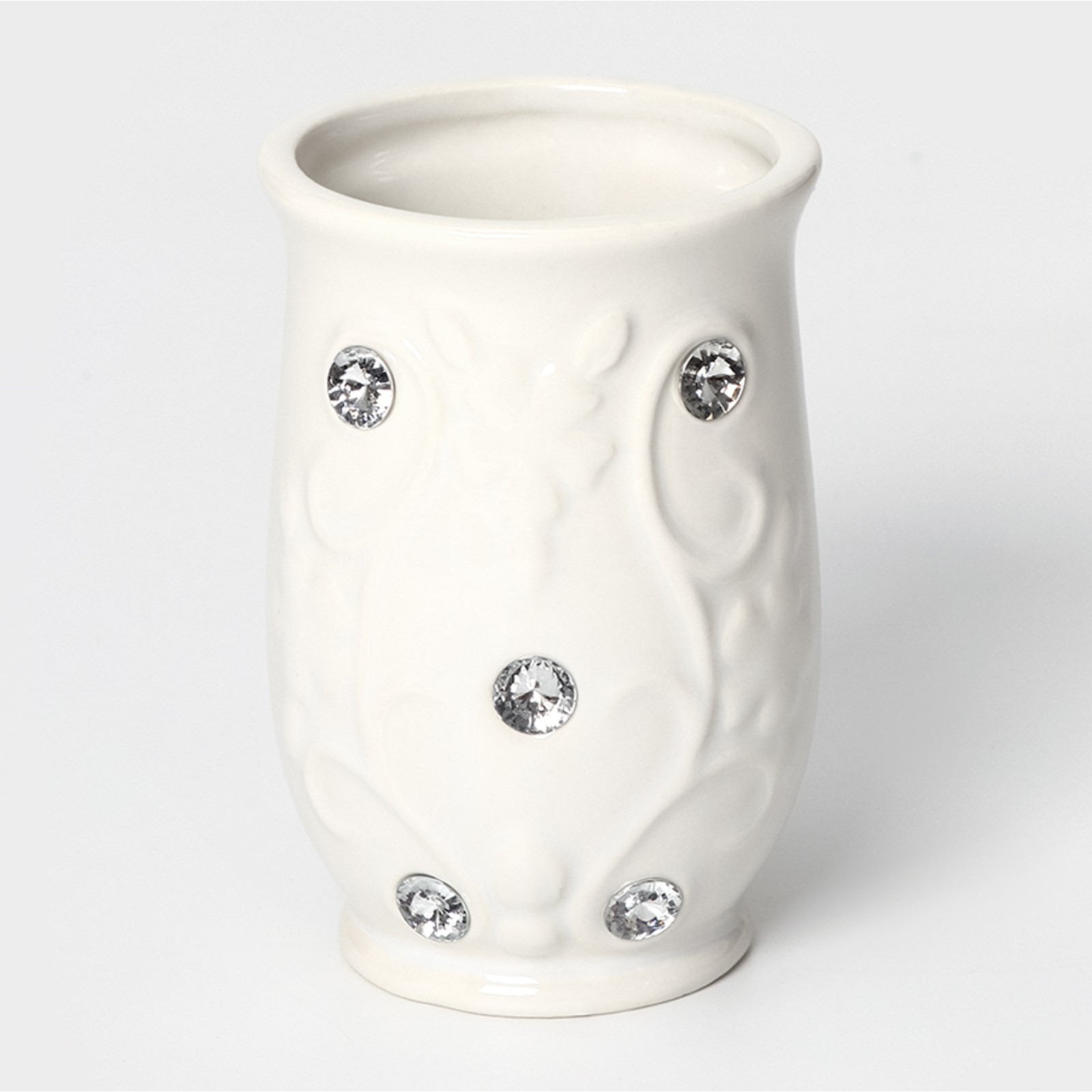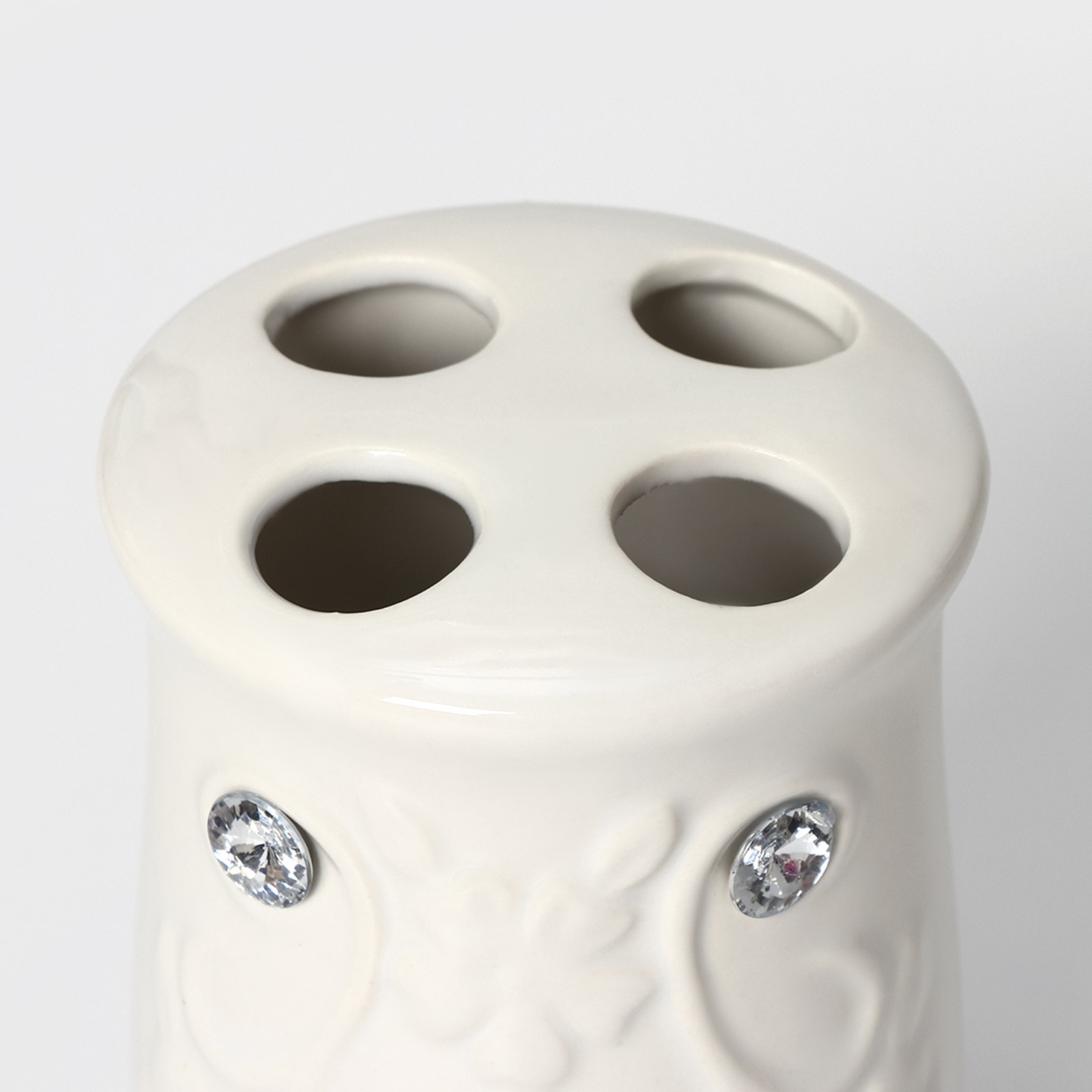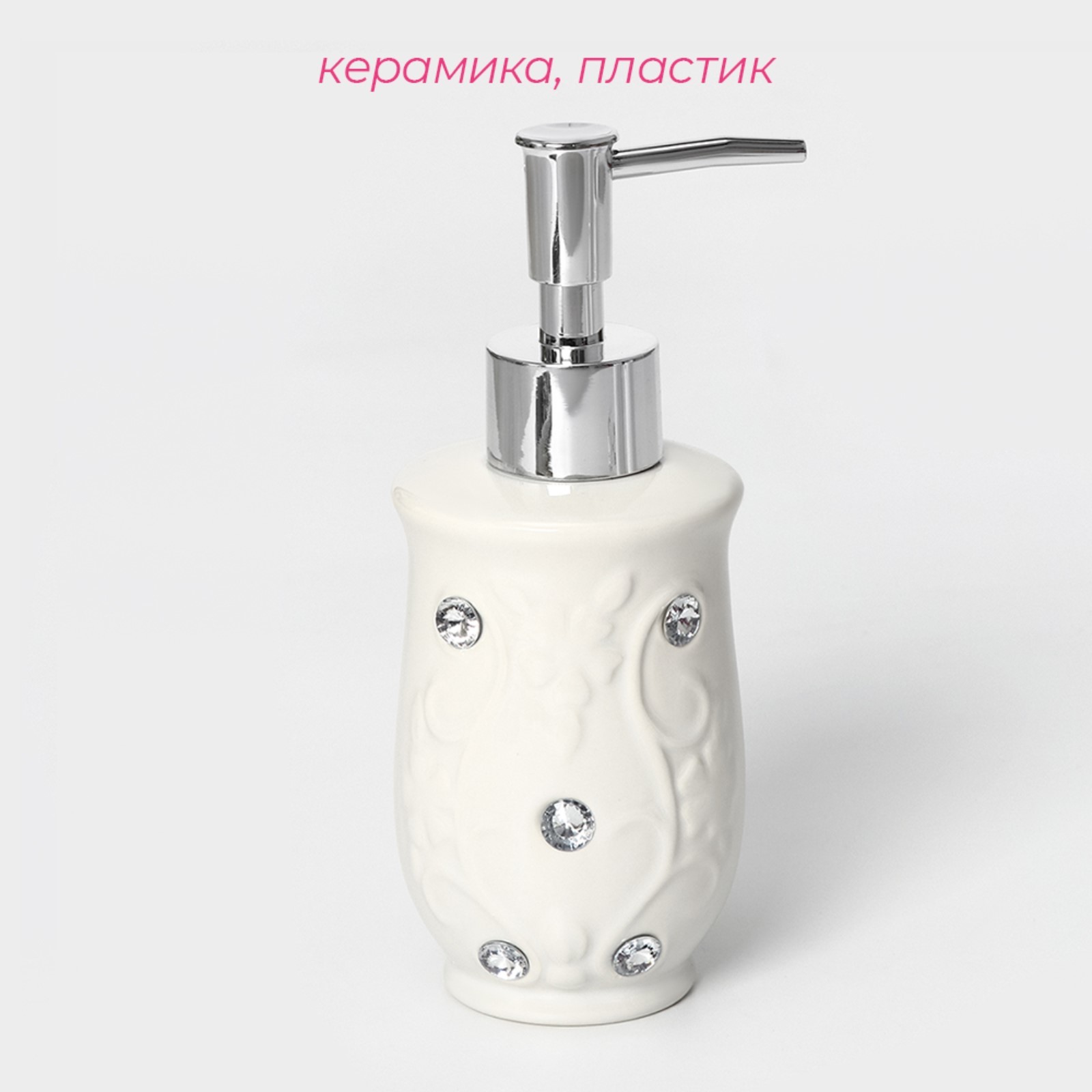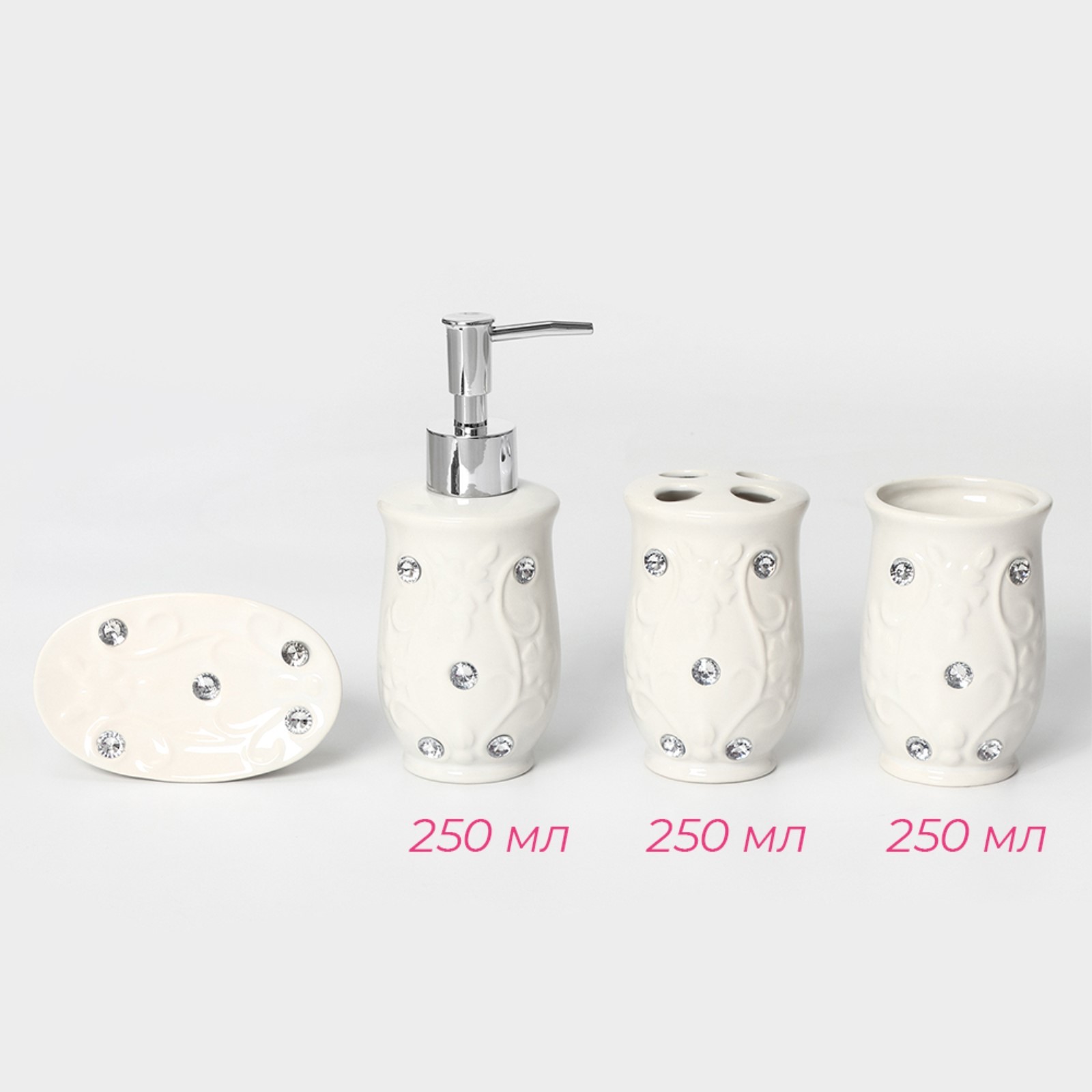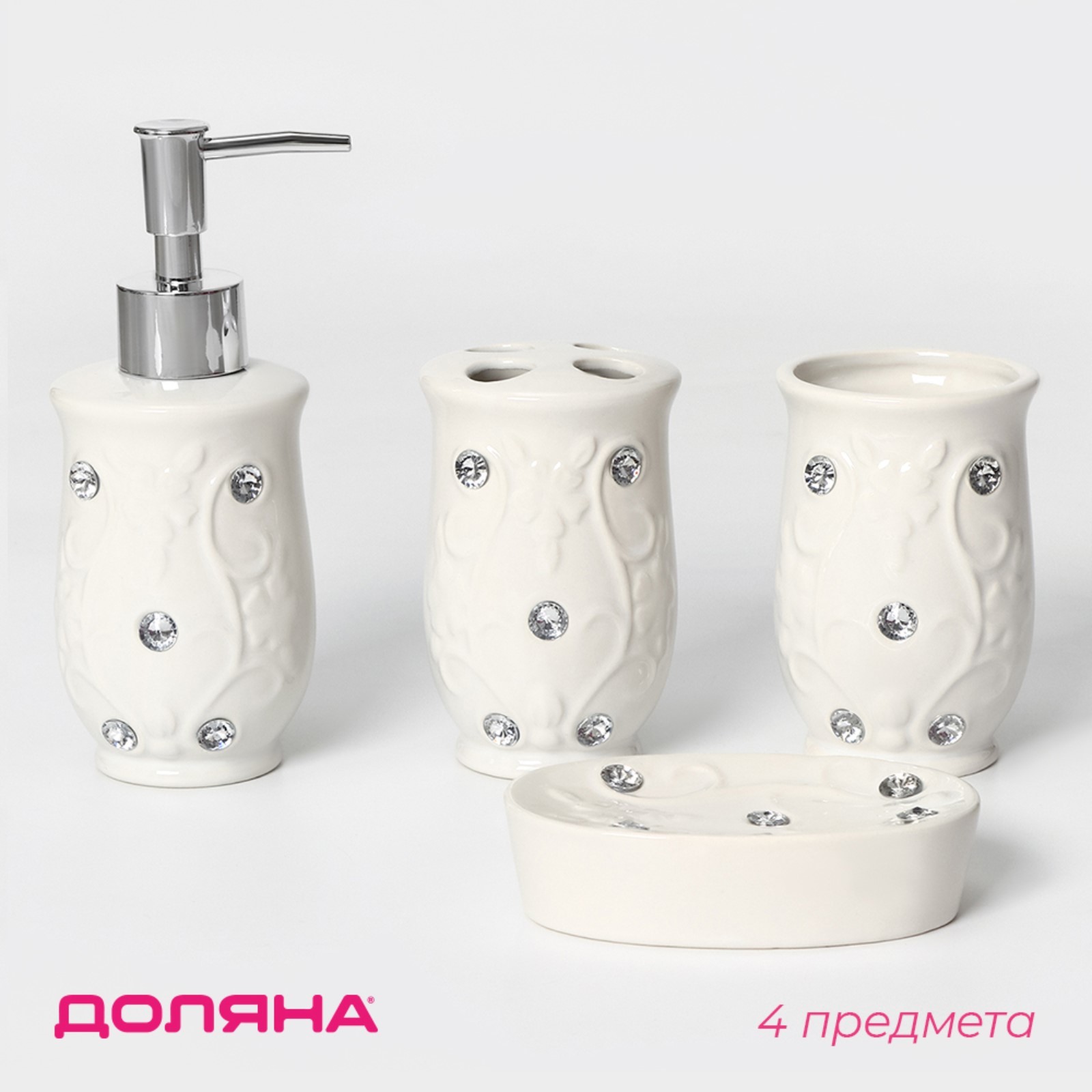 Набор аксессуаров для ванной комнаты доляна «изящный барельеф», 4 предмета (дозатор 250 мл, мыльница, 2 стакана), цвет белый