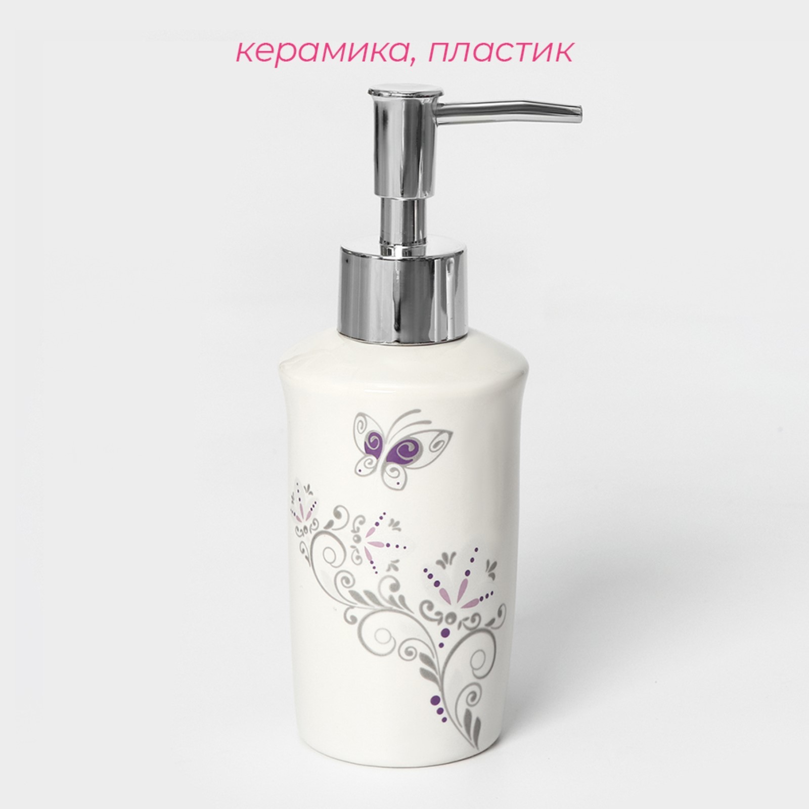 Набор аксессуаров для ванной комнаты доляна «изящество», 4 предмета (дозатор 250 мл, мыльница, 2 стакана), цвет белый