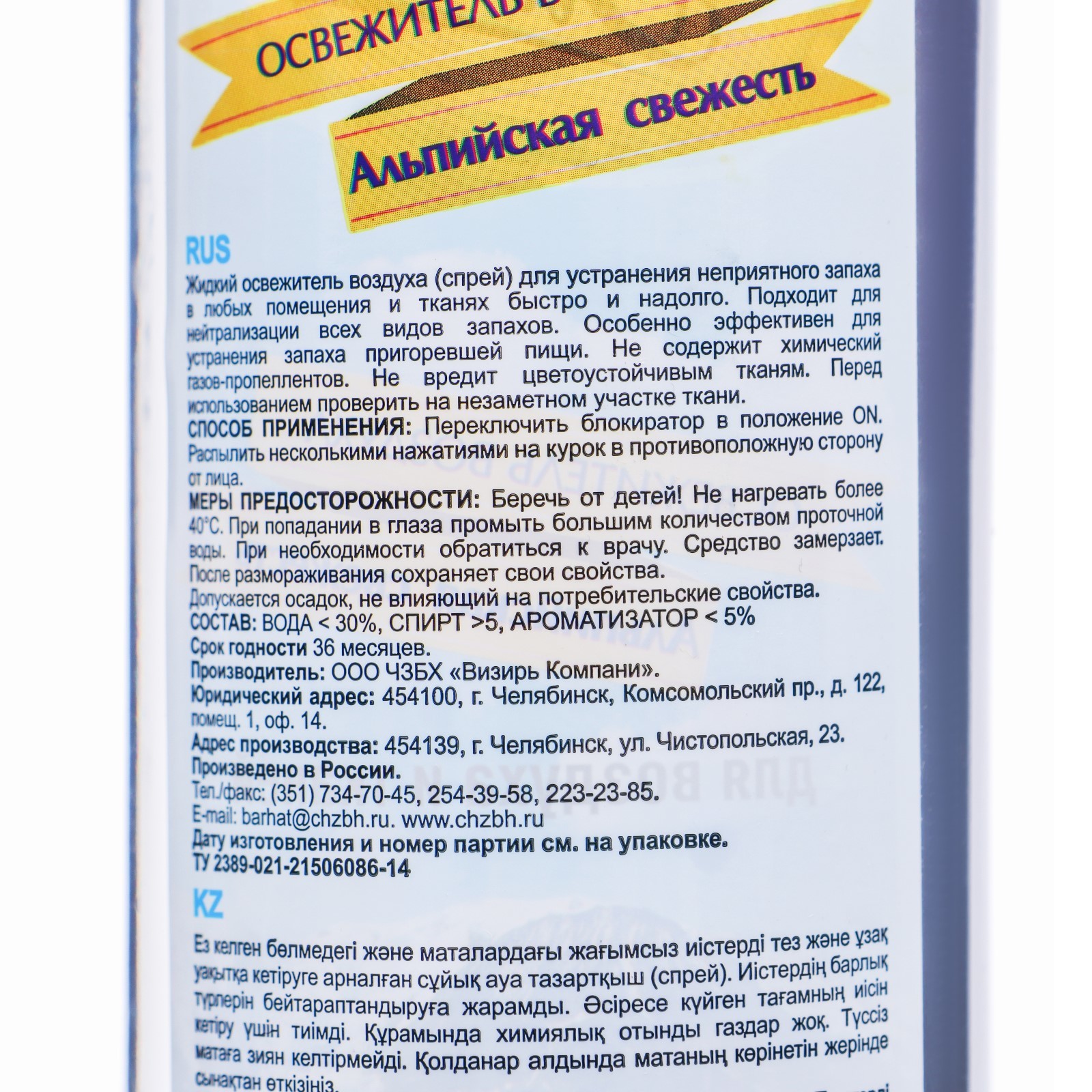 Освежитель воздуха Barhat «альпийская свежесть» 500 гр