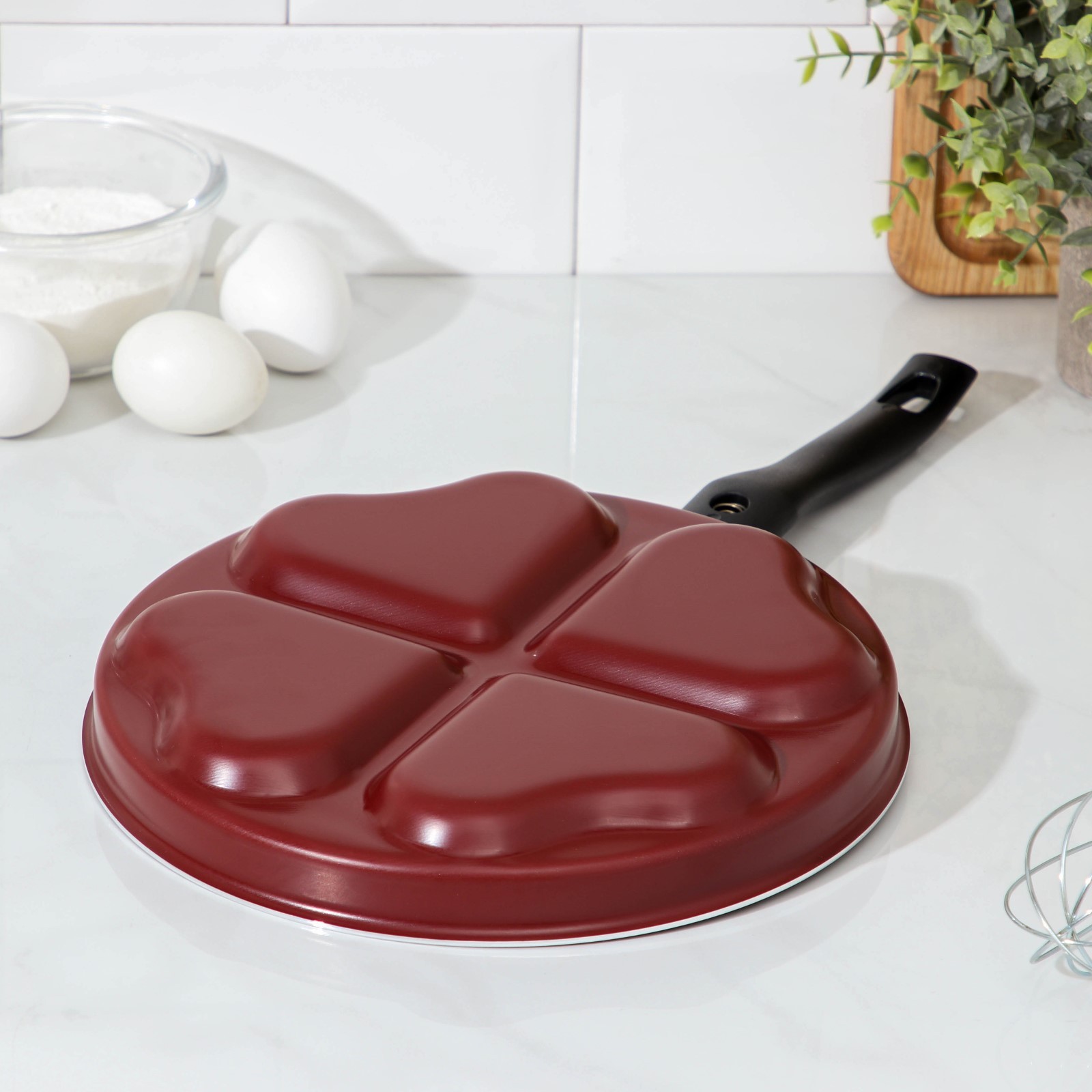Сковорода Happy Heart, D=26 см, пластиковая ручка, антипригарное покрытие, цвет бордовый
