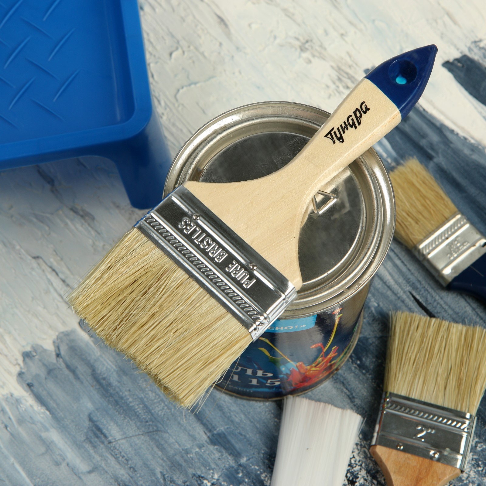 Кисть плоская ТУНДРА предназначена для нанесения красок, эмалей и лака на различные поверхности.