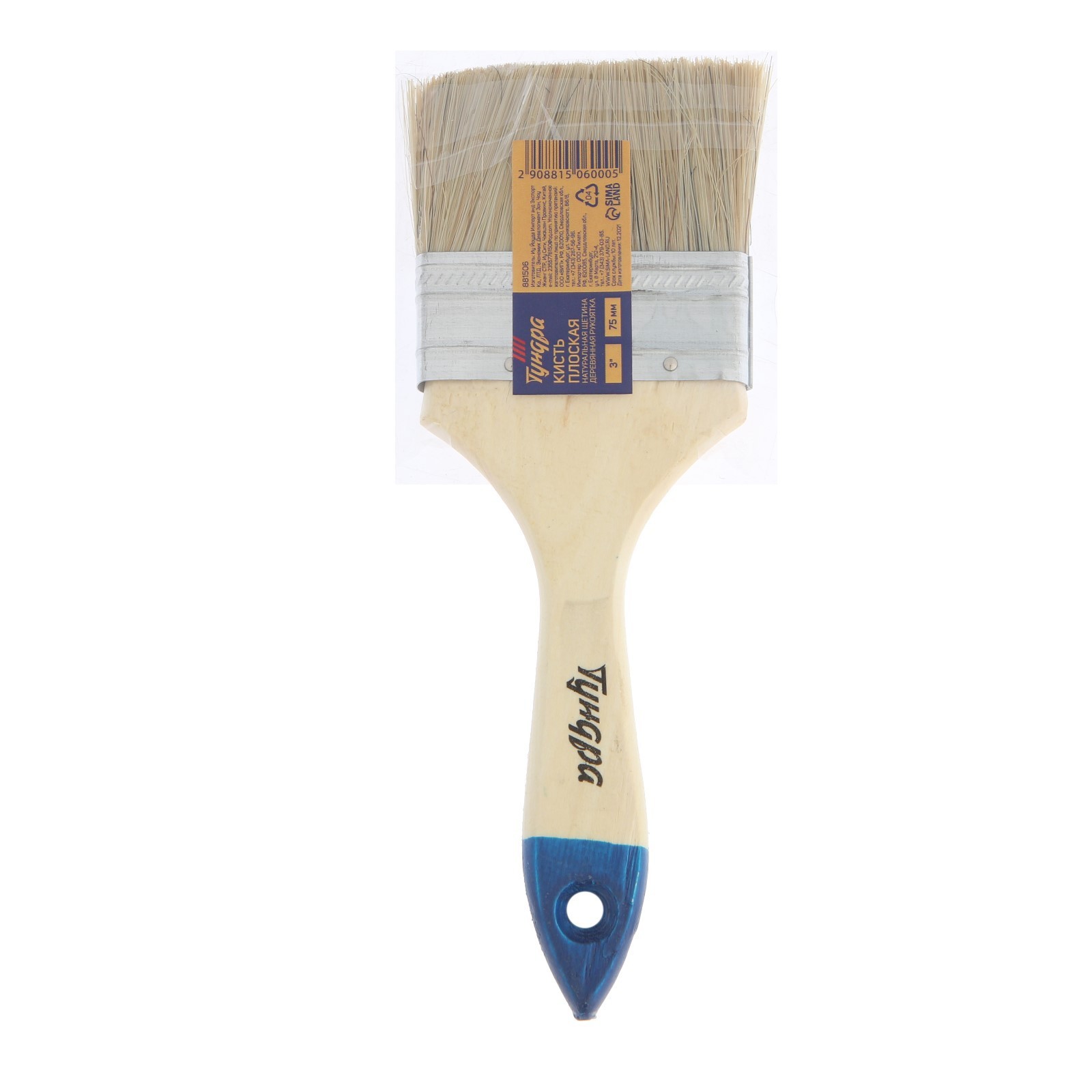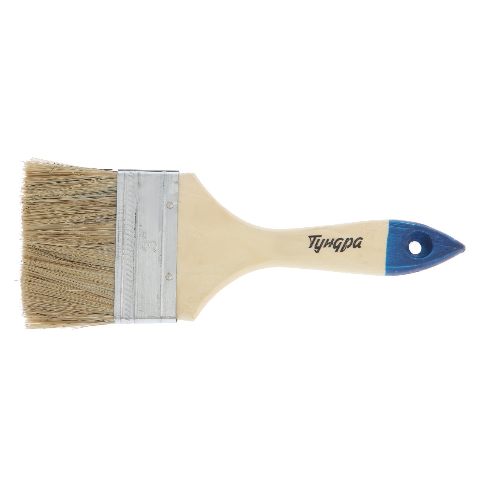 Кисть плоская тундра, натуральная щетина, деревянная рукоятка, 3, 75 мм