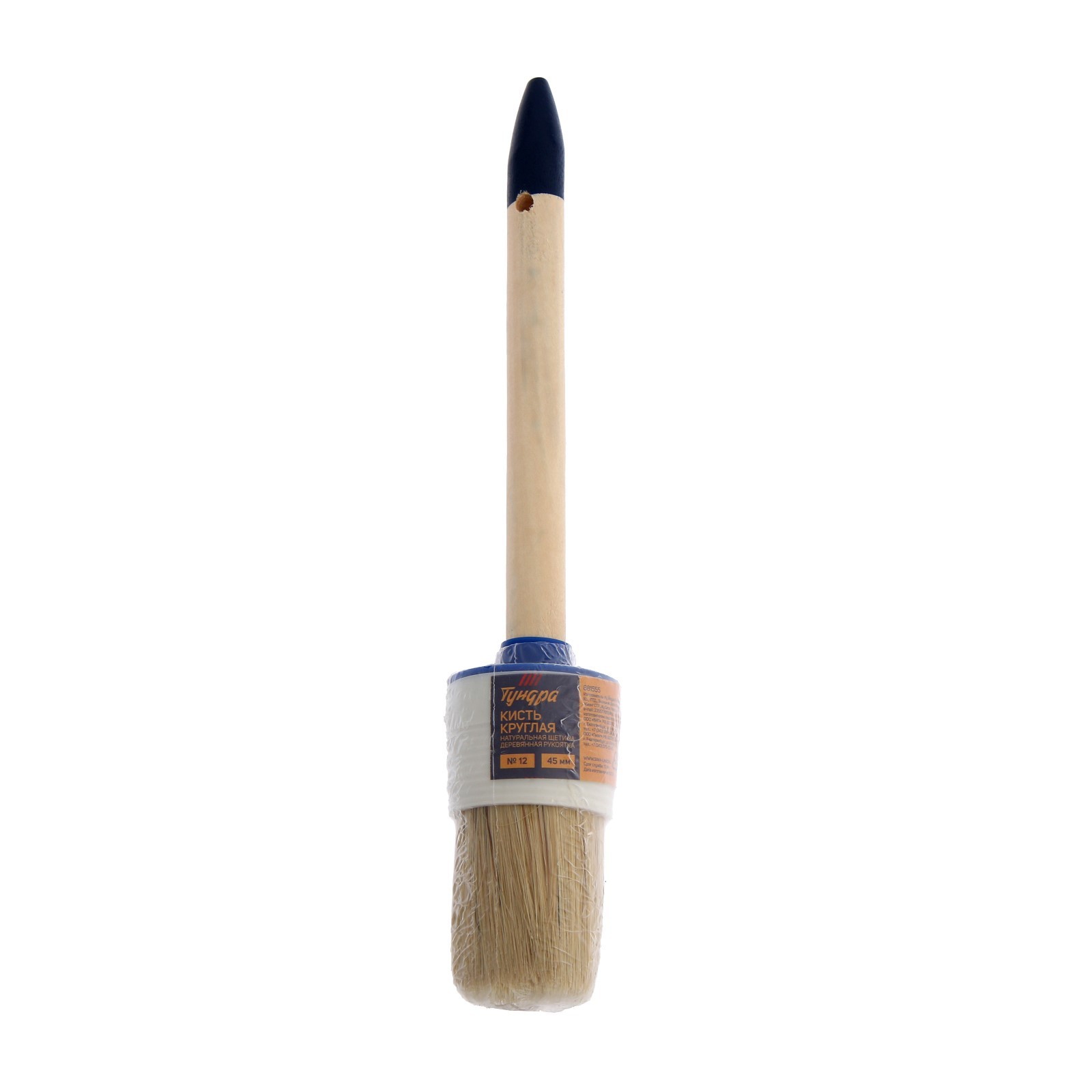 Кисть круглая тундра, натуральная щетина, деревянная рукоятка, № 12, 45 мм