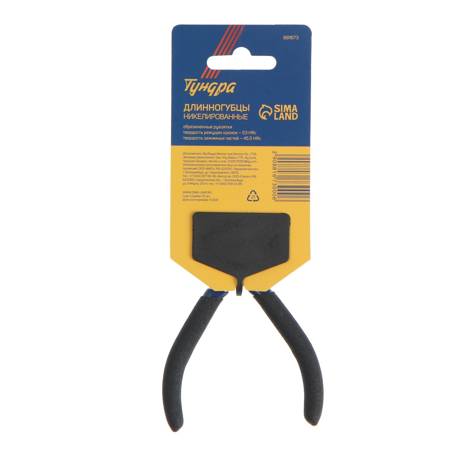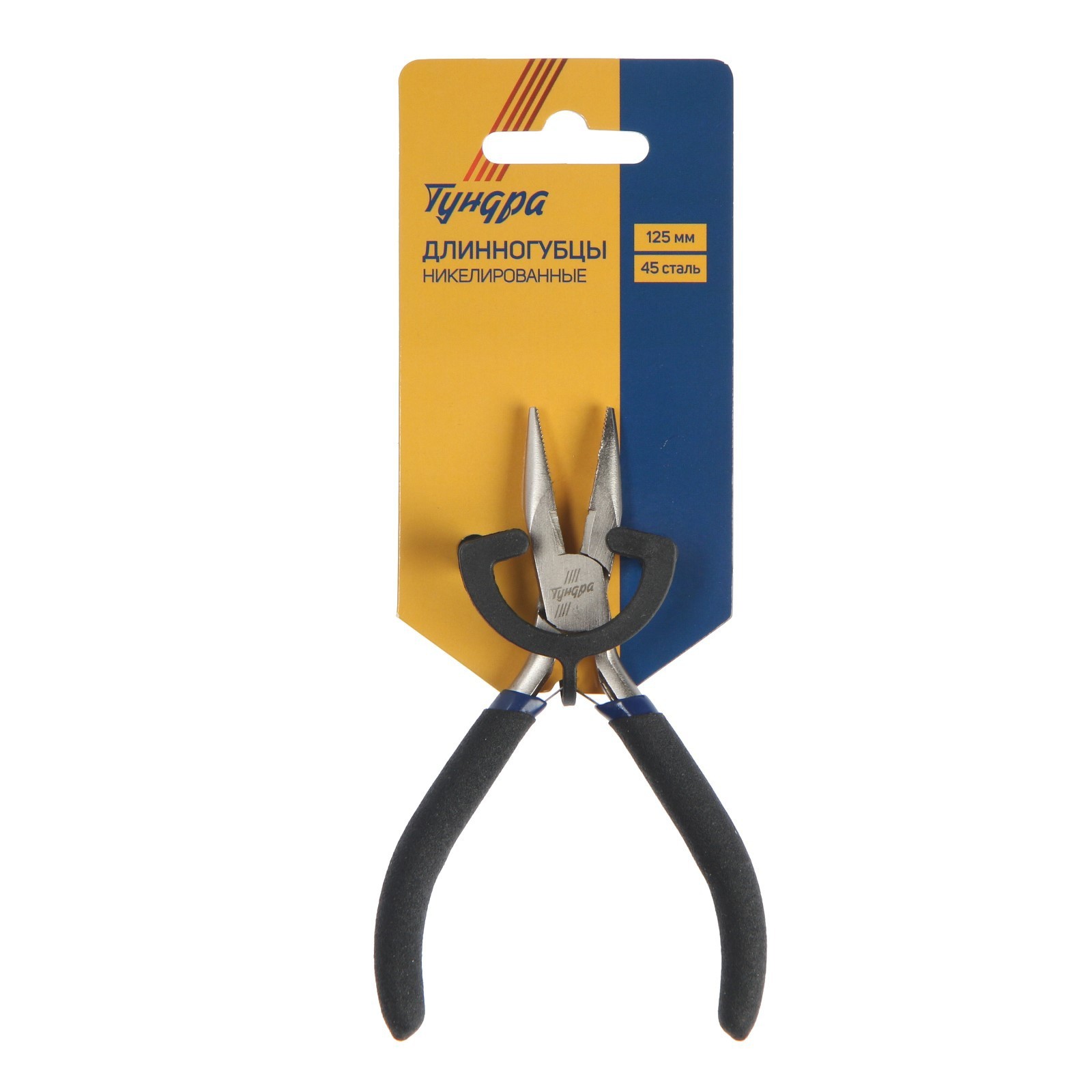 Длинногубцы тундра Mini, никелированные, обрезиненные рукоятки, 125 мм