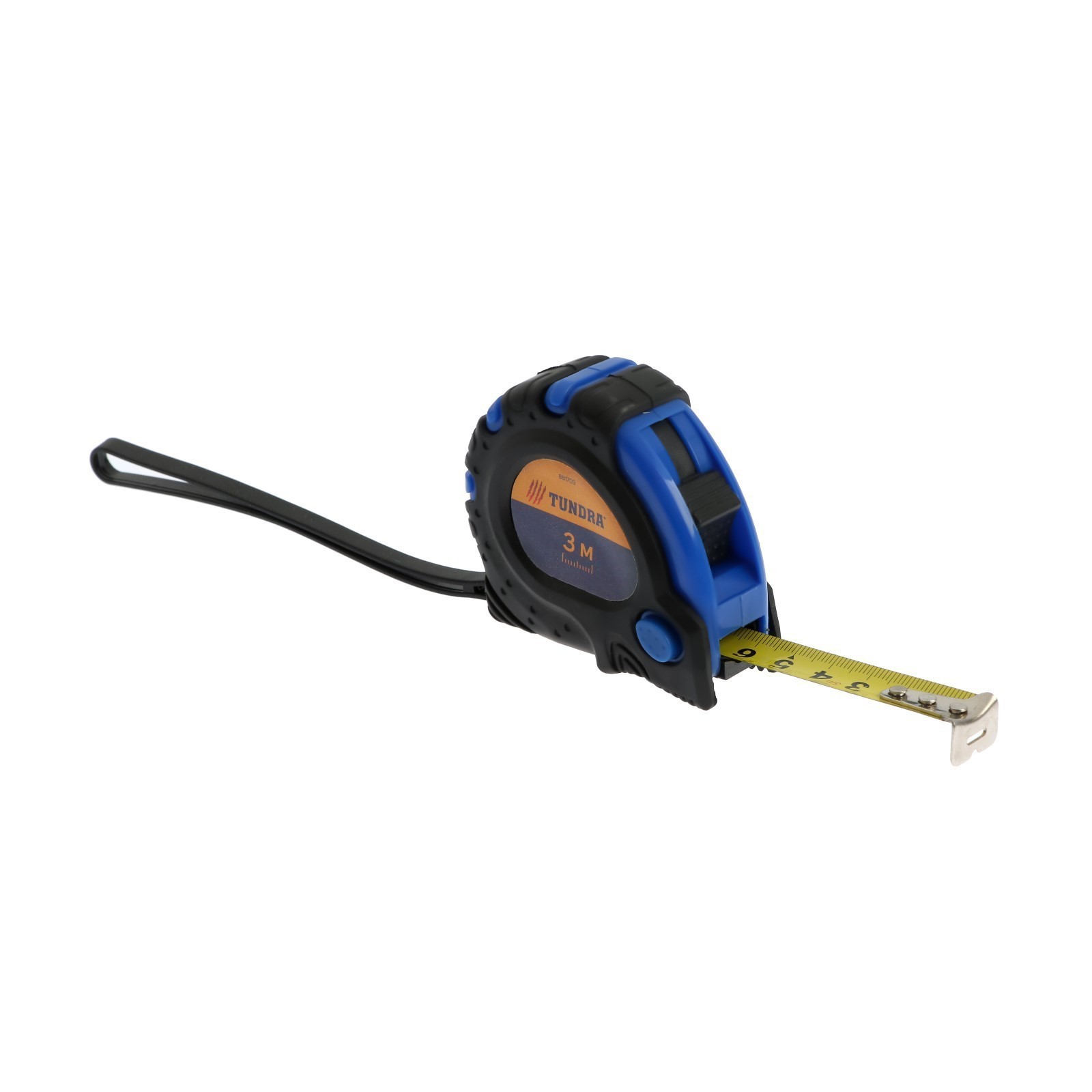 Рулетка тундра, обрезиненный корпус, 3 фиксатора, 3 м 16 мм